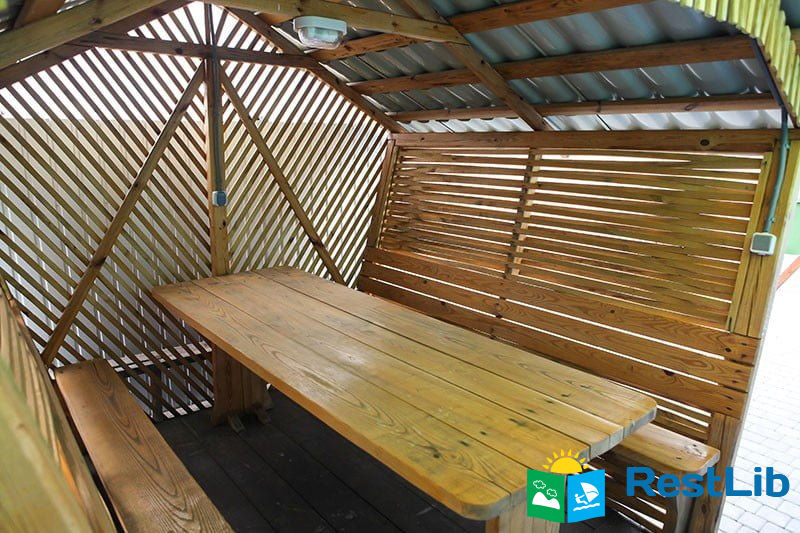 На території бази: майданчик для дітей, стоянка для авто, бесідки для відпочинку, мангали, тощо.