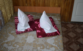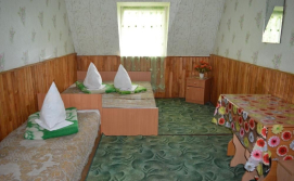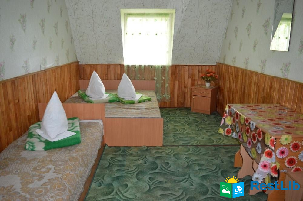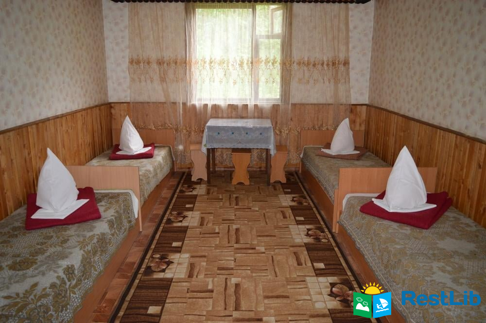 У двоповерховому будинку є 12 кімнат (дво-, три- та чотиримісні). Є кімнати стандарт та люкс. Дві душові на першому поверсі. Туалет на вулиці. Біля кожної кімнати стоїть стіл та стілець.