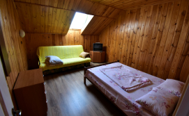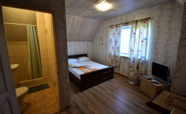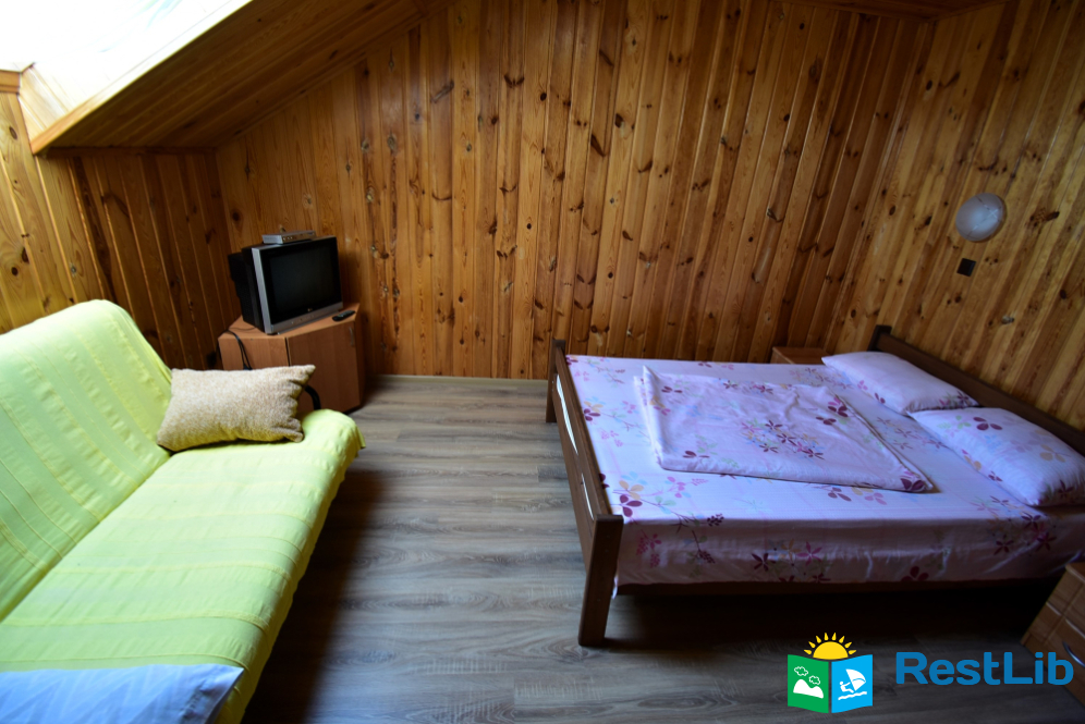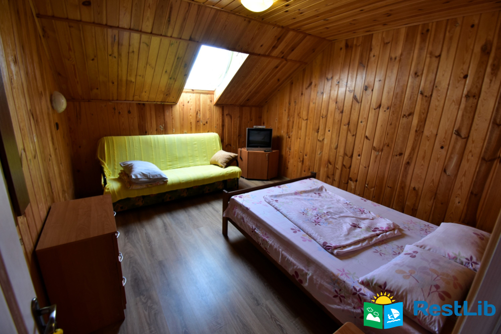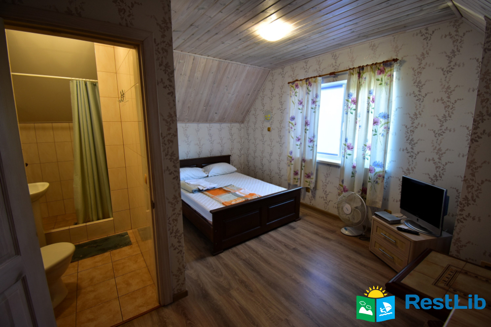 2 номери на другому поверсі будинку №1. В номері двоспальне ліжко, розкладний диван, телевізор, комод. Санвузол (душ, туалет, умивальник) та кухня на поверсі - спільна на 4 кімнати.