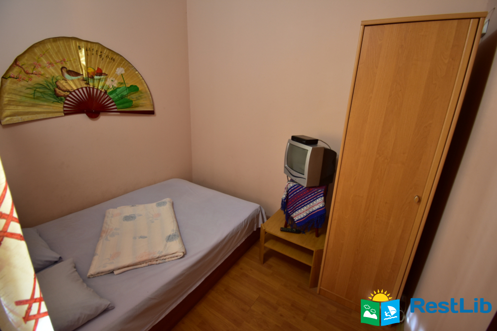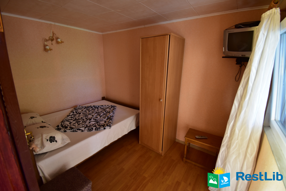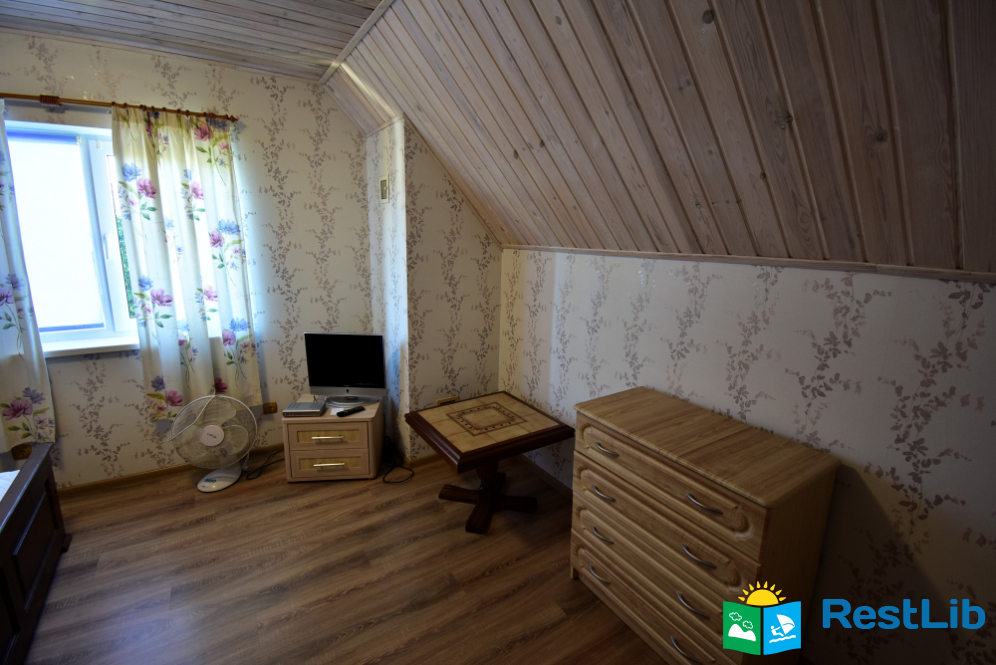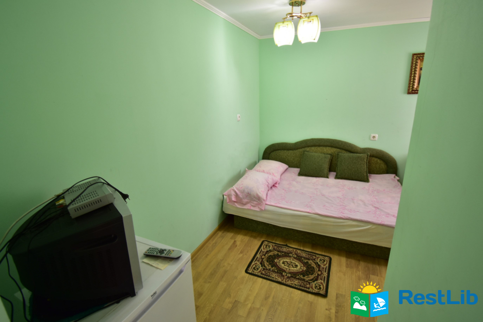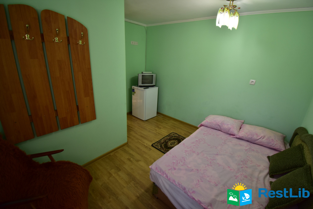 Номер на другому поверсі будинку №1. В номері двоспальне ліжко, телевізор, комод. Санвузол (душ, туалет, умивальник) та кухня на поверсі - спільна на 4 кімнати.