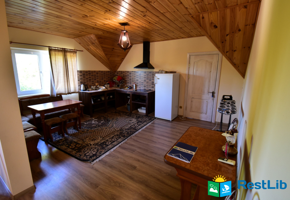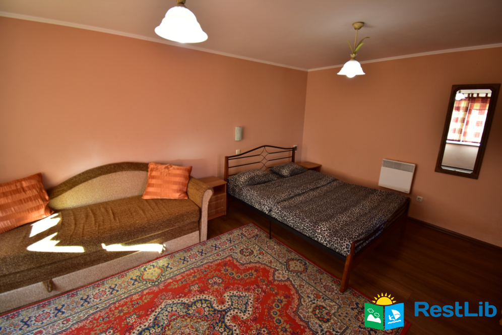 Двоповерховий будинок на відкритій території. На кожен поверх окремий вхід з вулиці. Здається повністю або окремими поверхами по 4 особи на поверх. І поверх: кімната з двоспальним ліжком + великий розкладний диван, кухня з усім необхідним, санвузол. ІІ поверх: тераса, спальна кімната з двоспальним ліжком, кухня з розкладним диваном, санвузол.