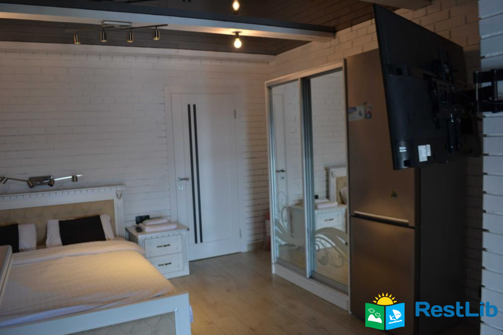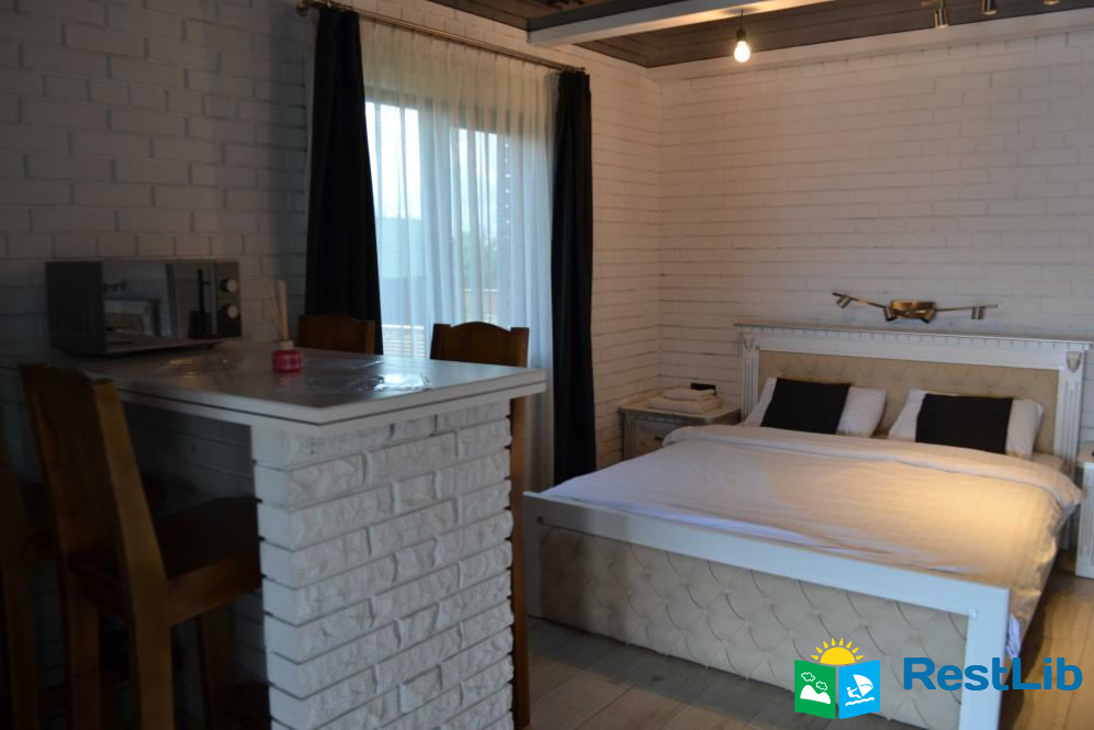 Студіо лівий двомісний Номер розміщений в двох поверховому будинку, на першому поверсі, на території садиби «Твій Кут». Обладнаний сучасними та комфортними меблями, санвузол, кухня і тераса для відпочинку. Максимальна місткість 3 гостя. Особливості номеру: - Двоспальне ліжко; - Можливість додаткового спального місця, за попереднім погодженням та доплатою; - Телевізор; - Холодильник; - Шафа та тумбочки для зберігання речей; - Санвузол; - Кухня та посуд для приготування їжі; - Електрочайник; - Фен; - Фумігатор від комарів; - Гаряча вода 24 години на добу; - В зимовий період часу опалення 24 години на добу; - Безкоштовний доступ до мережі інтернет; - Тераса для відпочинку; - Рушники; - Паркування авто на території садиби під цілодобовим спостереженням. • Мангал зона; • Дитячий майданчик.