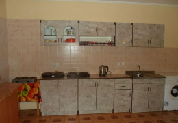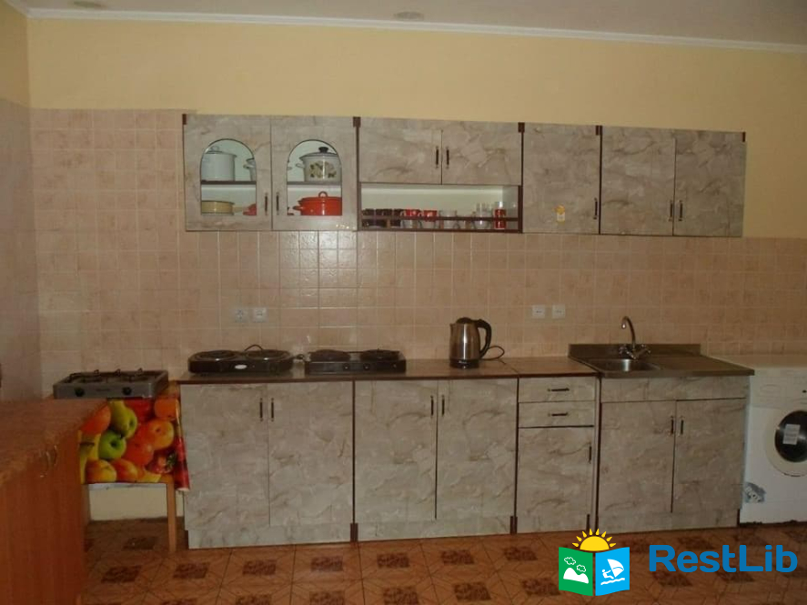 На кухні є для кожної кімнати полиця в кухонній тумбі та в холодильнику. Є деякий необхідний посуд, електрочайник, мікрохвильова піч, електричні газові камфорки. В душі є гаряча вода, туалет зі зливним бачком та туалет сільського користування.