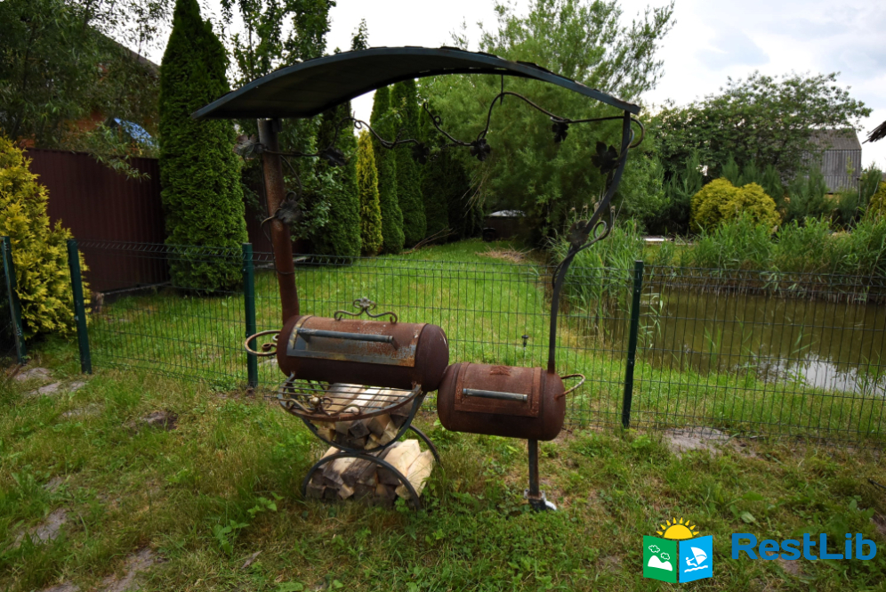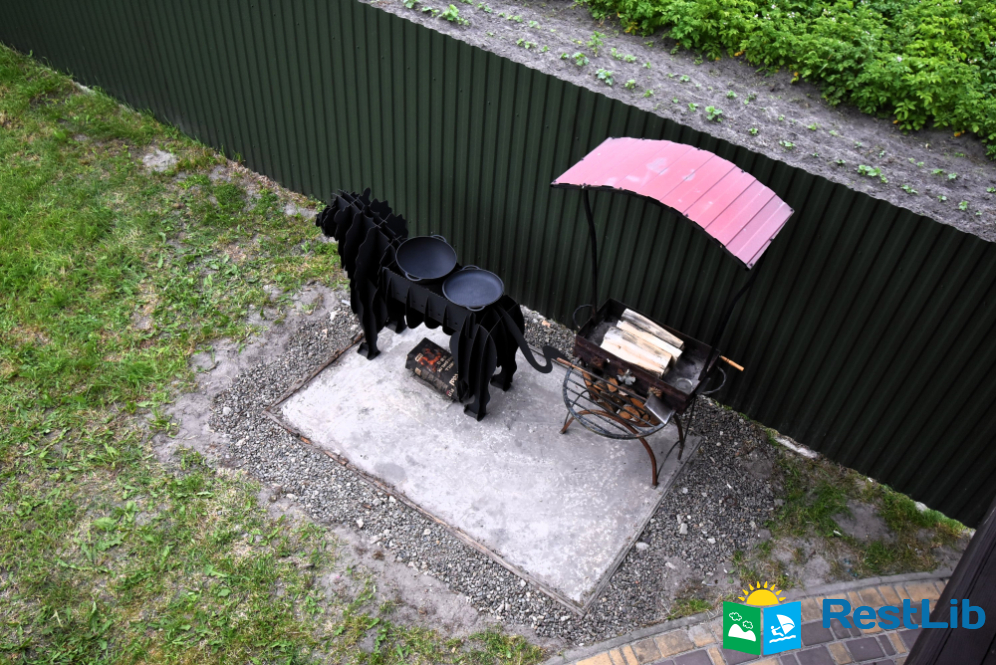 Окрема літня кухня-їдальня розташована в будинку навпроти — зручно для приготування страв на свіжому повітрі.
