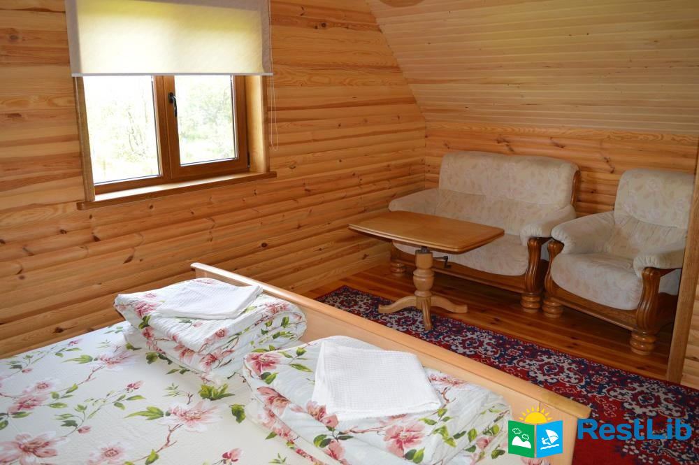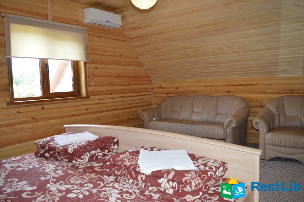 - 2-й поверх - 2 спальні кімнати (дваспальні ліжка, диван та крісло в кожній кімнаті, вішалка для одягу).