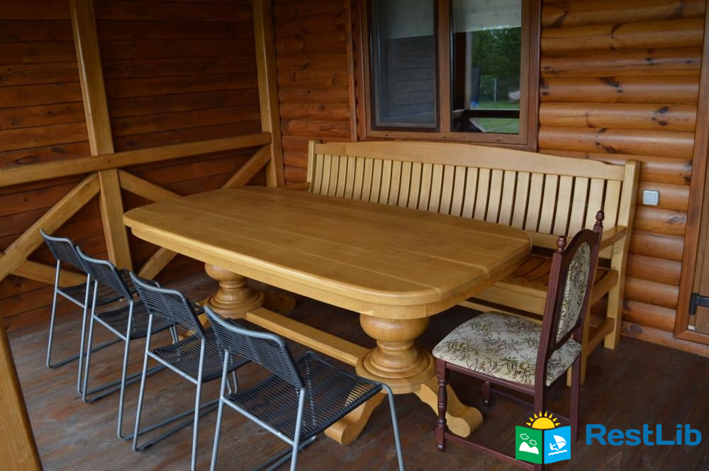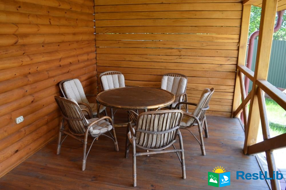 Котедж "Сієста" на 6 осіб має власну терасу, де стоїть стіл, стільці та свій мангал.