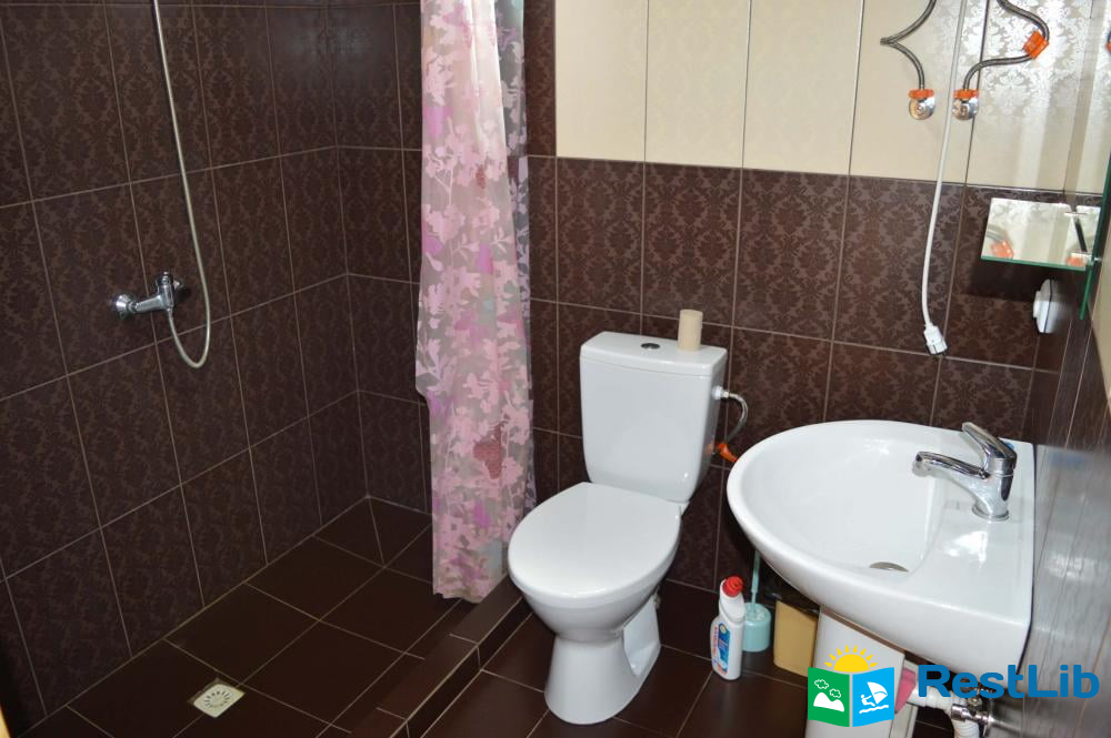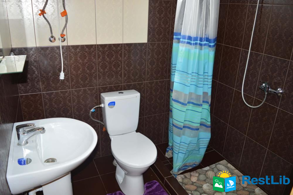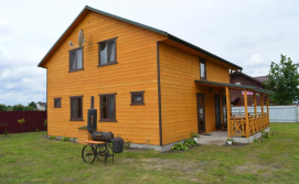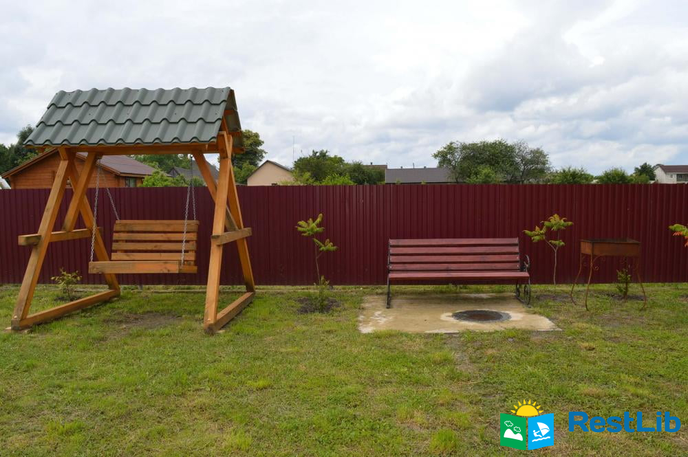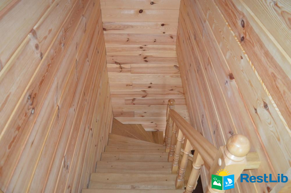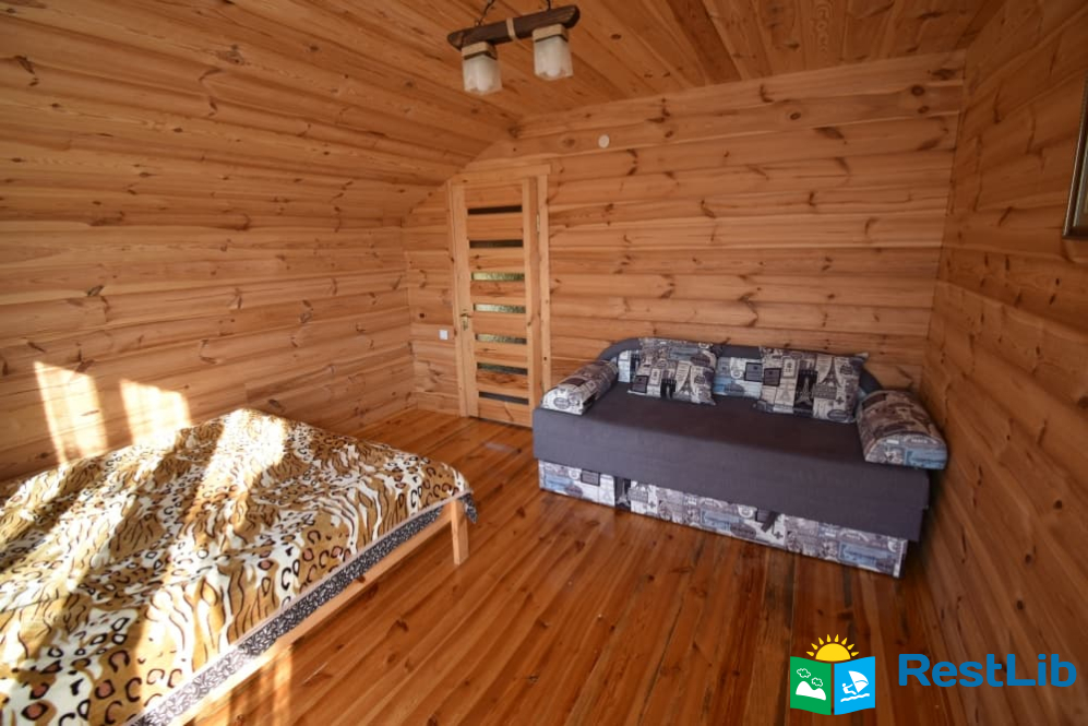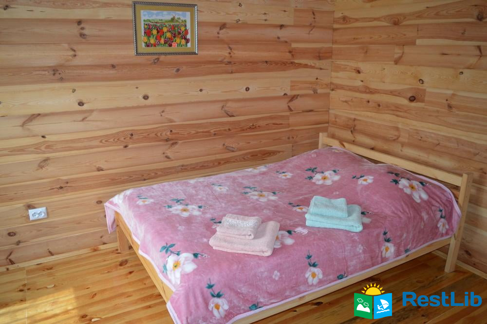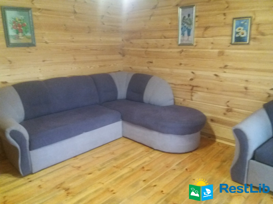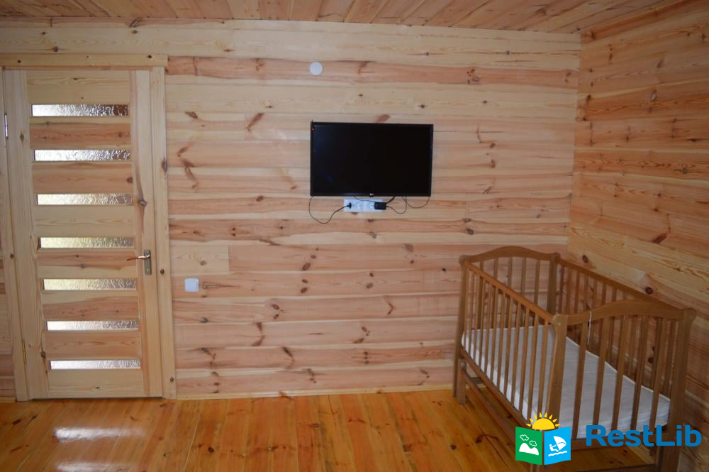 Половина будинку 8 чоловік. Половина двоповерхова, на першому поверсі: вітальня, кухня-студія, душ, туалет, умивальник. Другий поверх: дві спальні кімнати з двоспальними ліжками, один номер має вихід на балкон. Перед будинком крита тераса з столом.