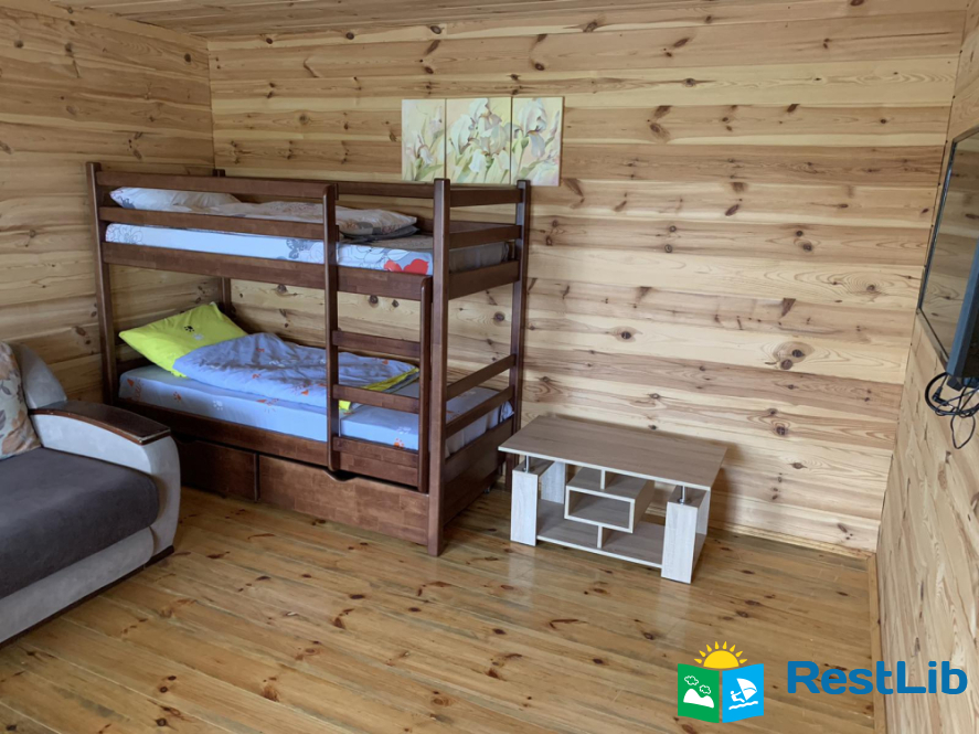 - перший поверх: вітальня з диваном та телевізором, кухня-студія, санвузол(душ, туалет, умивальник).