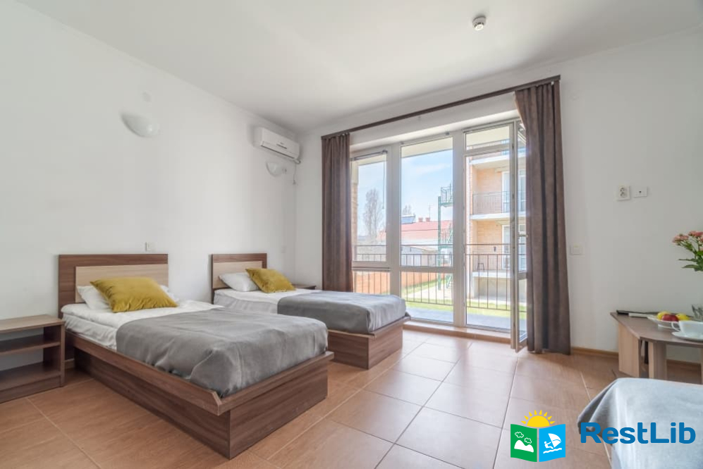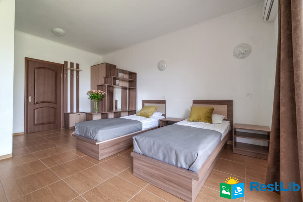 2х местный номер с двуспальной или раздельными кроватями, с общей площадью 25м2, в номере есть телевизор, холодильник, кондиционер, Wi-Fi, балкон