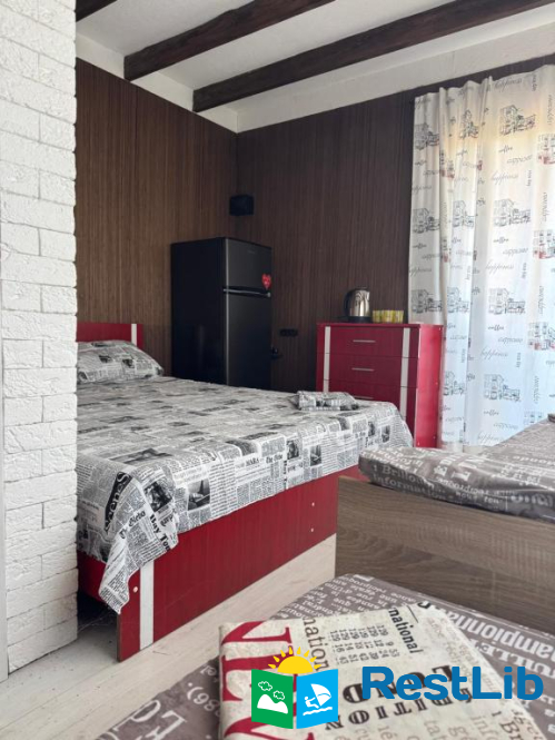 В номері двоспальне та односпальне ліжка, холодильник, кондиціонер, власний санвузол. Кухня спільна.
