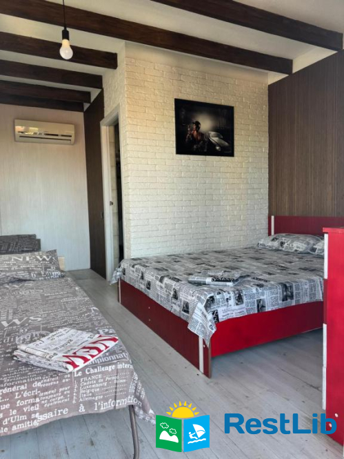 В номері: 1 двоспальне та 2 односпальних ліжка, кондиціонер. Санвузол та кухня спільні.