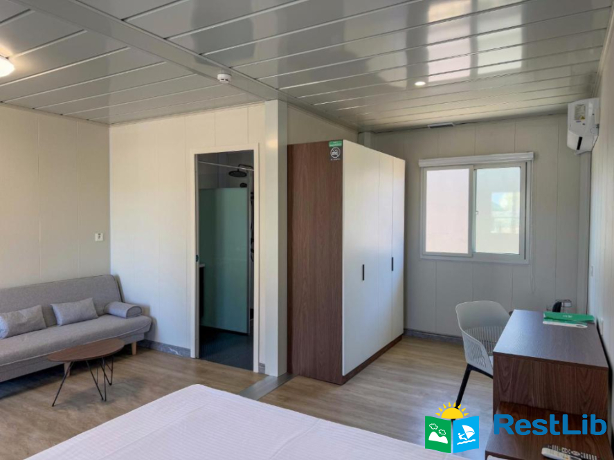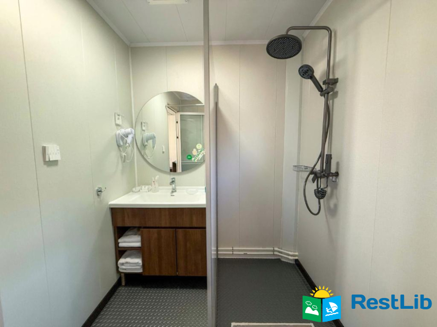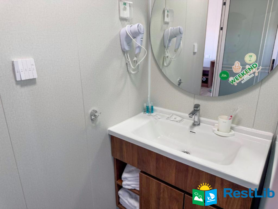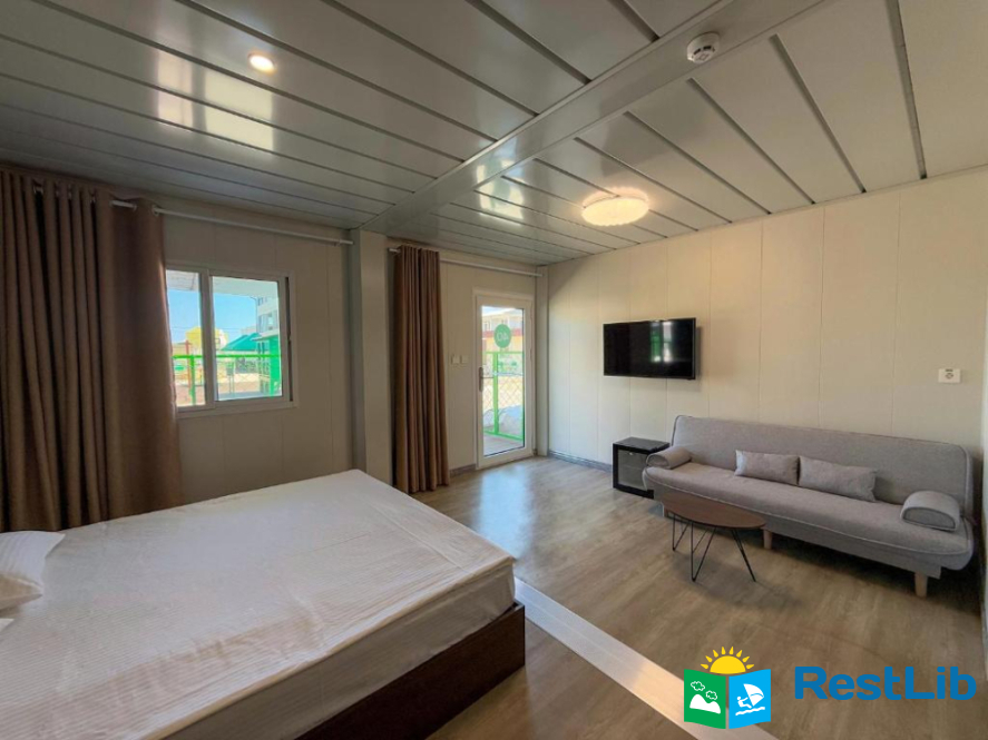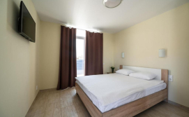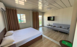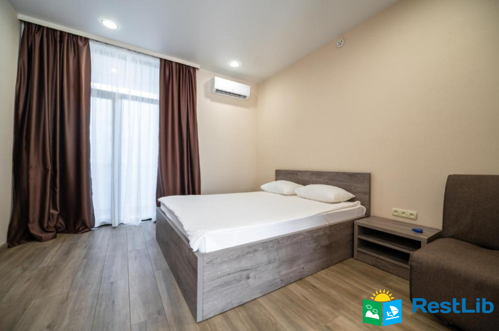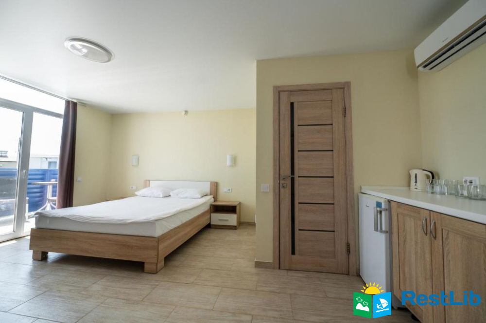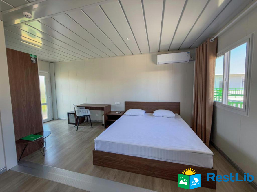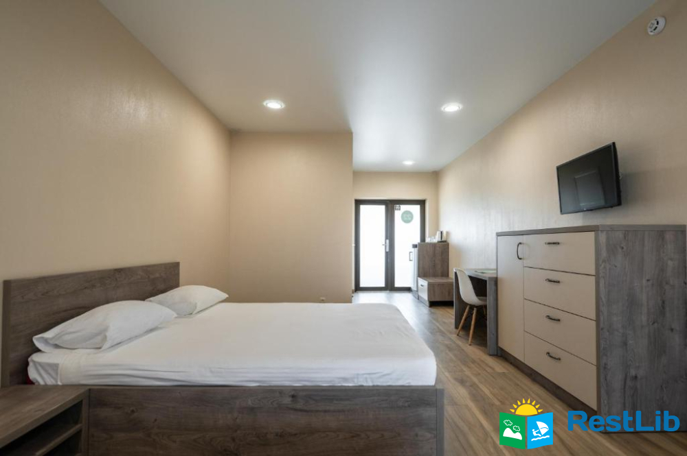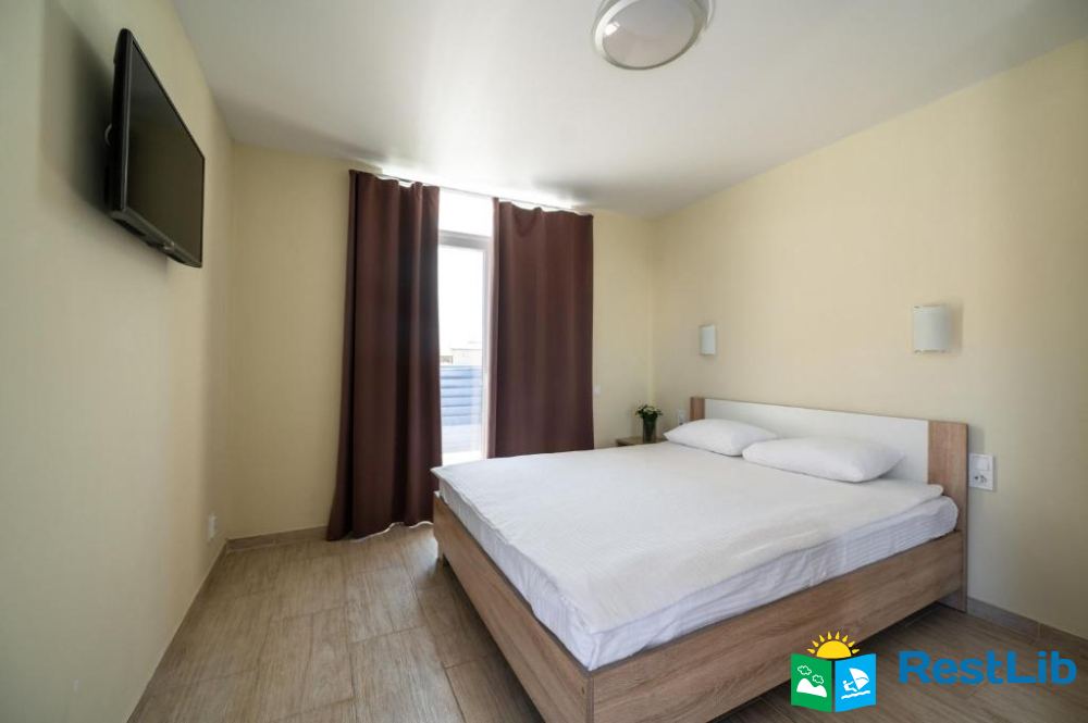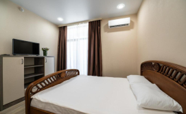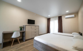 В номері: кондиціонер, холодильник, електричний чайник, посуд, сейф, душова кабіна, фен, рушники, телевізор, вай-фай.