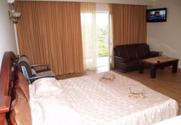У номері є: велике двоспальне ліжко, шафа, журнальний столик з мармуру, шкіряний диван і додатковий диванчик, санвузол, на балконах сушарки для одягу, стіл, стільці, кондиціонер, супутникове ТБ, телевізор, персональний міні-сейф, холодильник, фен, рушники, електрочайник (кава, чай).
