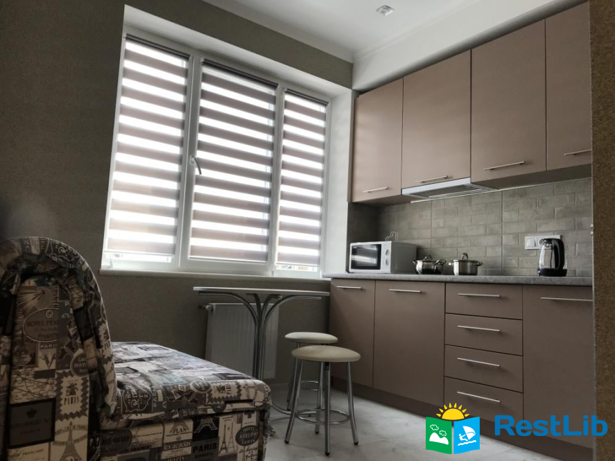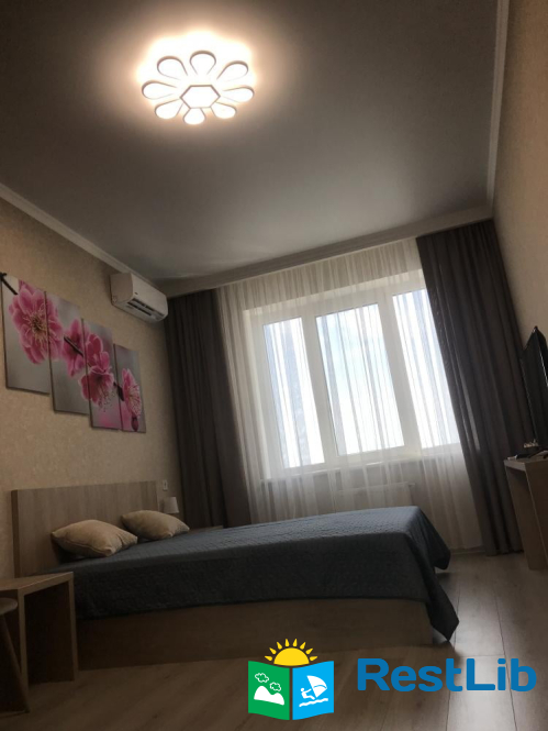 Одна спальня з двоспальним ліжком і розкладним диваном - 4 спальних місця (2 + 2). Все є для комфортного проживання та відпочинку - кондиціонер, холодильник, варильна поверхня, мікрохвильова піч, посуд, постільна білизна, праска, прасувальна дошка, пральна машина, душові приналежності, Wi-Fi.