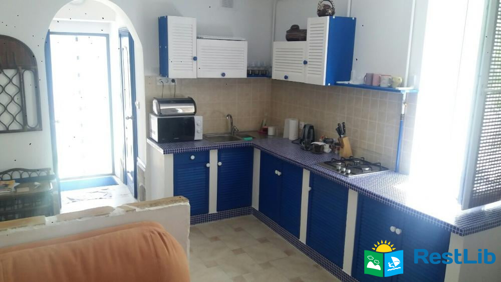 Будинок: 2 поверхи загальною площею 100 м.кв. 2 спальні, вітальня, кухня, передпокій, туалет, душ, балкон з виглядом на море. Сучасні меблі. Супутникове ТБ.