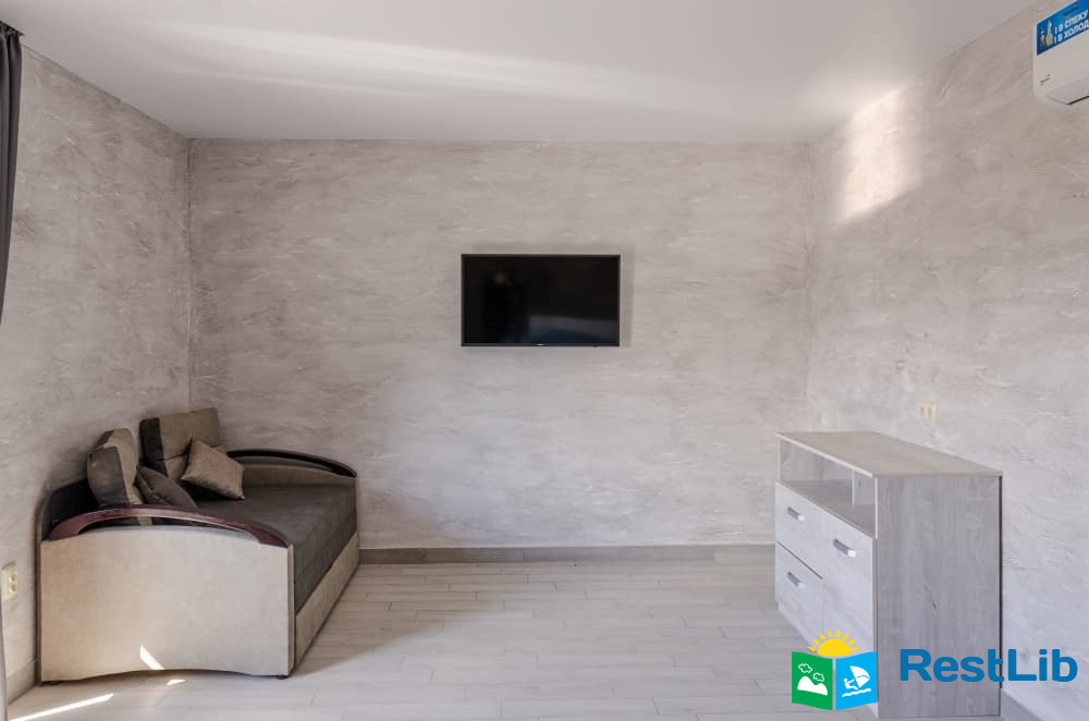 Номер 20,9 м2 с 1 двуспальной и 1 раскладным диваном и собственной ванной комнатой с душем. Вместимость 4 взрослых