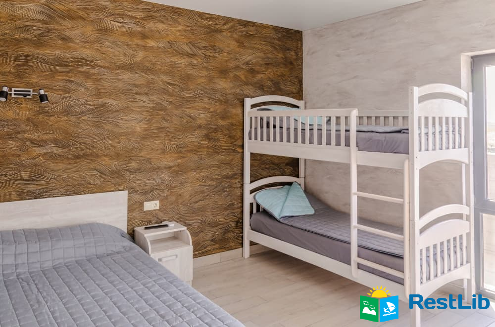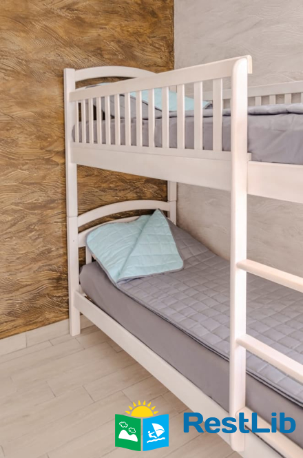 Номер 15,5 м2 с 1 двуспальной и 1 двухъярусной кроватью и собственной ванной комнатой с душем. Вместимость 2 взрослых и 2 ребенка