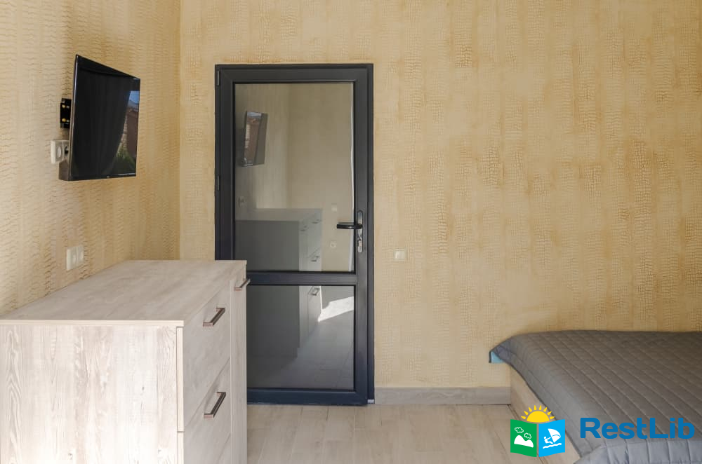 Номер 15,5 м2 с двуспальной кроватью и собственной ванной комнатой с душем. Вместимость 2 взрослых или 2 взрослых и ребенок до 3 лет
