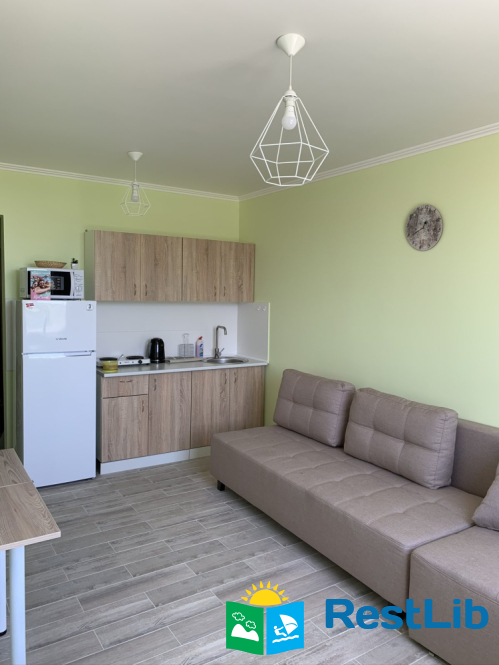 На території комплексу цілодобова парковка, що охороняється, є ресторан, басейн, дитячий майданчик, мангал. До моря – 2 хвилини ходьби. Заїзд до апартаментів – після 12.00, виїзд – до 10.00. Апартаменти здаються від 3 днів. За більш детальною інформацією звертайтесь за номером телефону.