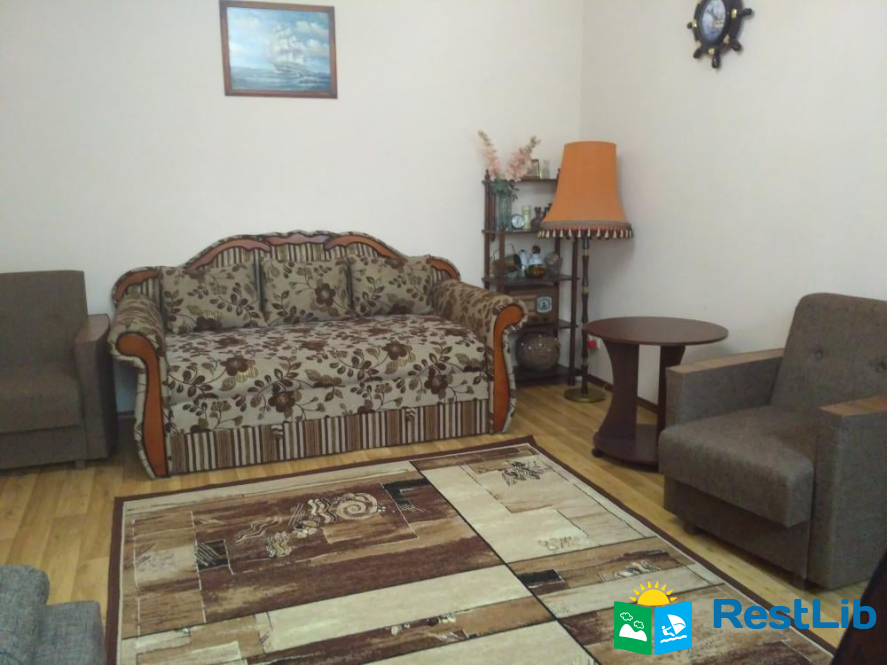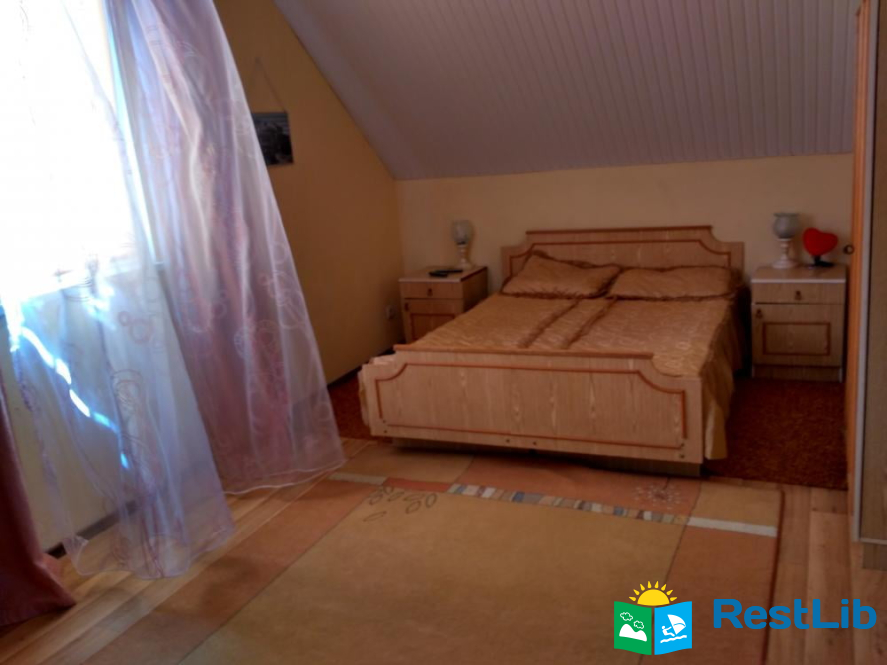 На першому поверсі кімната з кондиціонером (4 спальних місця), кухня (газова плита, 2 холодильники, мікрохвильова піч, електрочайник, необхідний посуд), санвузол (туалет, умивальник, душова кабіна, пральна машинка, бойлер).