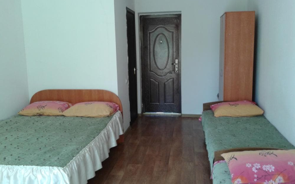 Розміщуємо гостей в 3-х поверховому готелі в 2,3,4 і 6-ти місних номерах категорій "комфорт" і "прості". Велика літня тераса на другому поверсі, і закритий майданчик на першому поверсі. Дуже зручний відпочинок для батьків з дітьми. У нас можна самим готувати, а це так необхідно для малюків. Пляж піщаний, біля берега мілко, що теж подобається дітям. Є кухня, обладнана всім необхідним для самостійного приготування. Можна самим посмажити шашлик, посидіти на веранді в компанії друзів або удвох на балкончику свого номера. Готель приймає з тваринами.