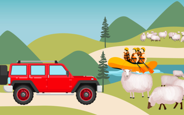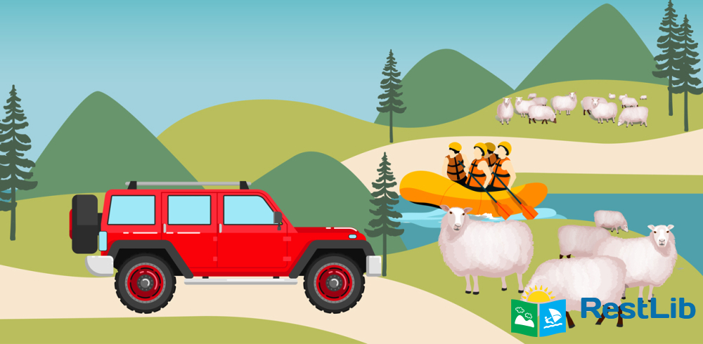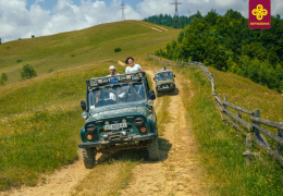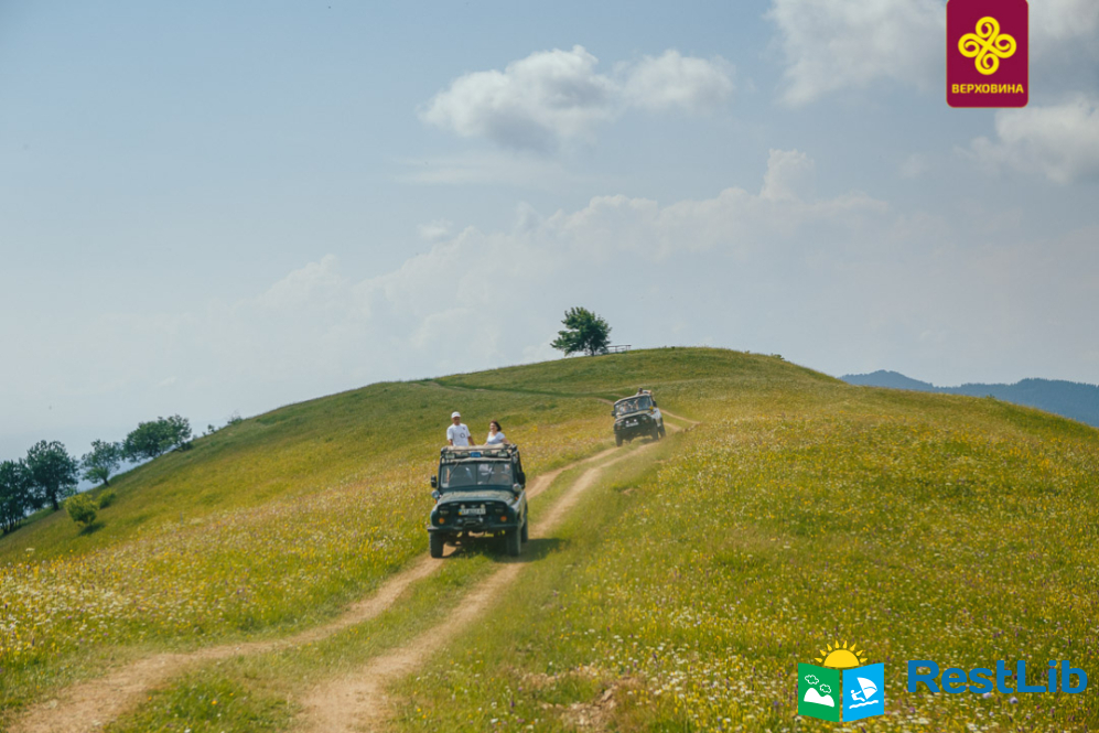 10:45 - джипінг машинами УАЗ (з відкритим верхом) у гори до гойдалки 1300 м.н.р.м. За додаткову оплату в 1000 грн. можливий виїзд на сироварню з гарними краєвидами.
