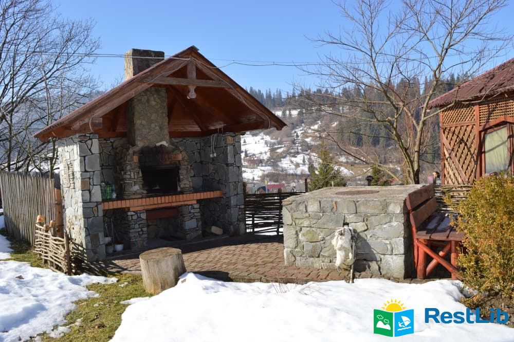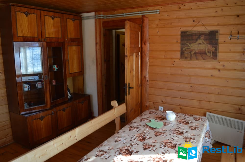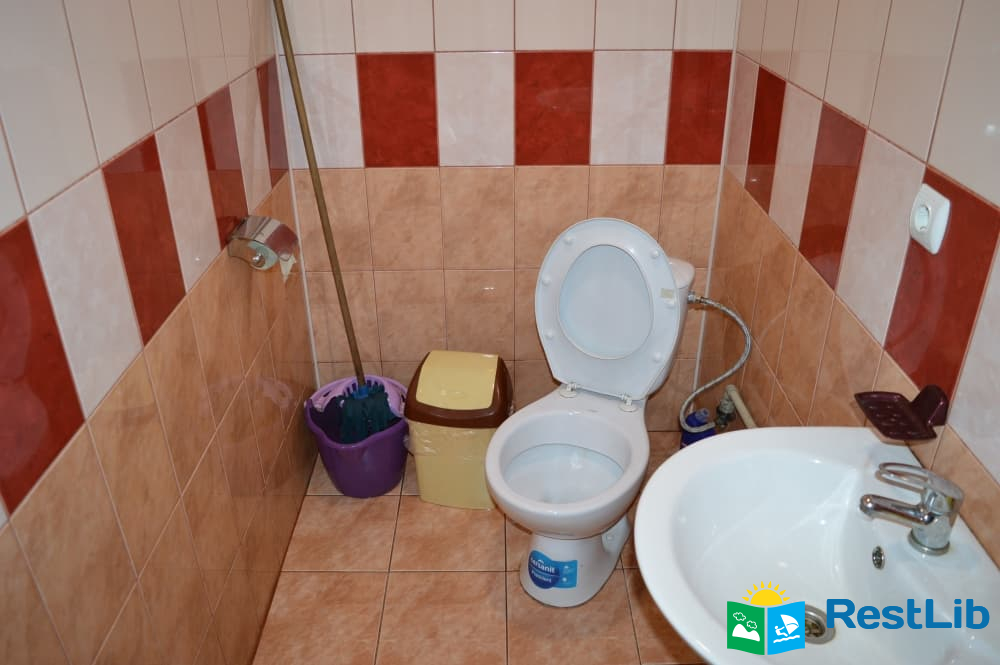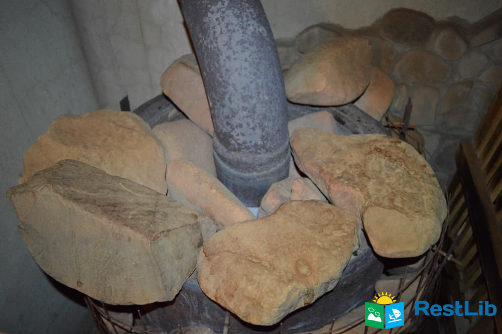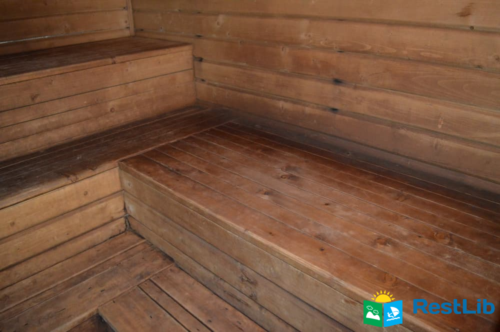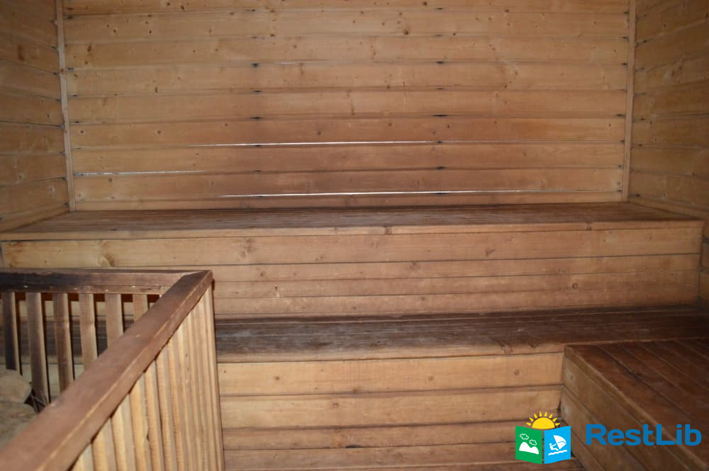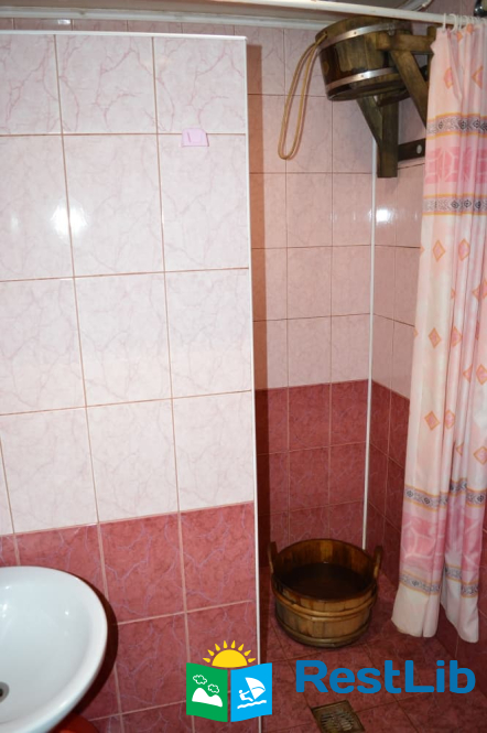 В бані є: кімната для відпочинку, тапки, шапки, душ, відро, туалет.