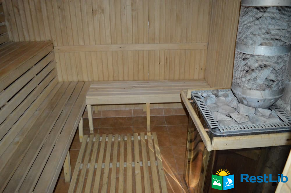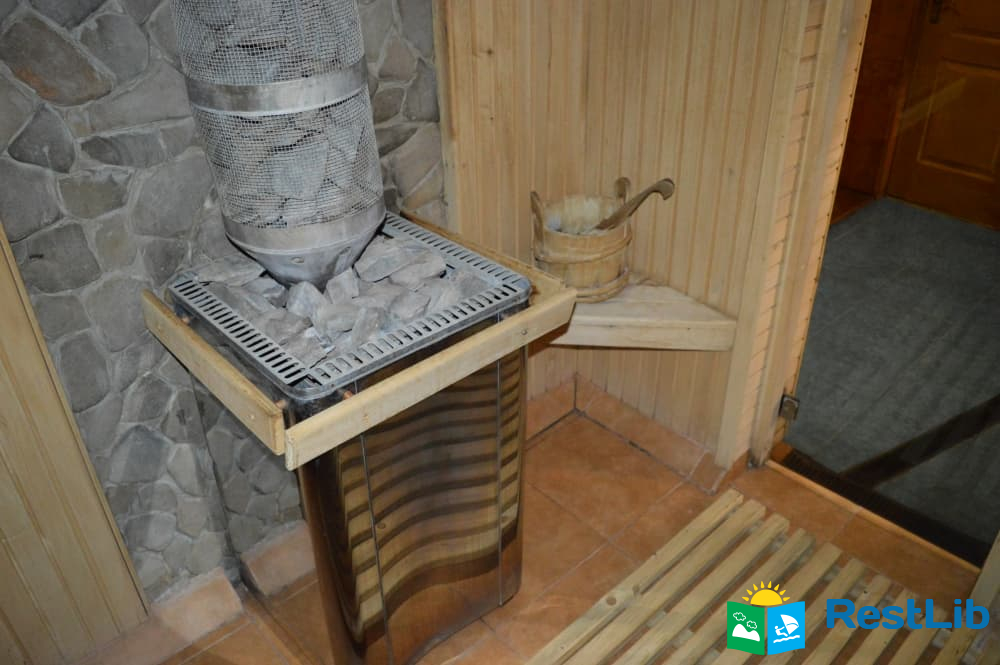 В сауні: зона відпочинку, парна, басейн, зливна бочка, душ, санвузол.