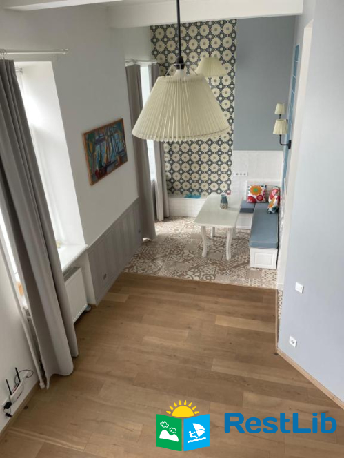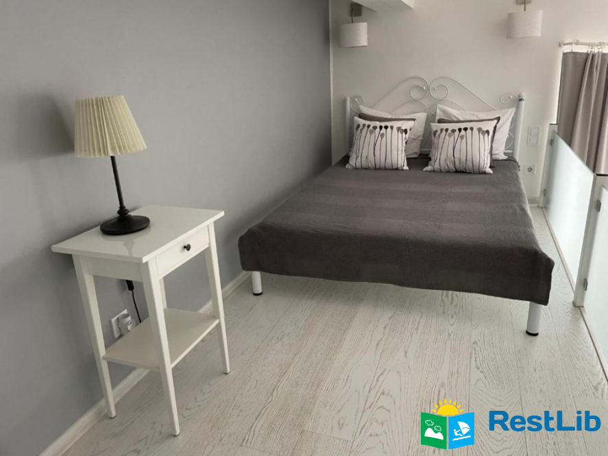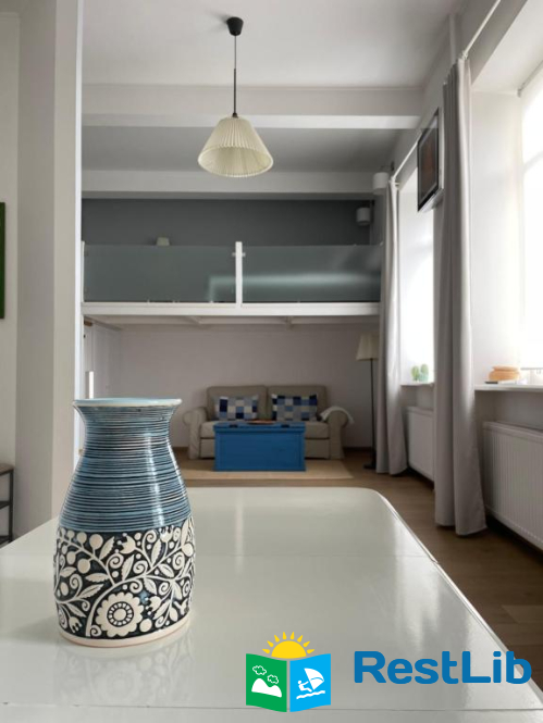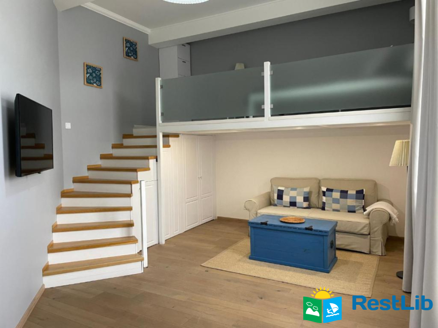 Невеликі 2-ох рівневі апартаменти-студіо розташовані на 2-му поверсі трьохповерхового житлового будинку. Оснащені всім необхідним для комфортного відпочинку. На другому поверсі міститься спальне місце з ліжком 140см, у вітальні - розкладний диван 160см.