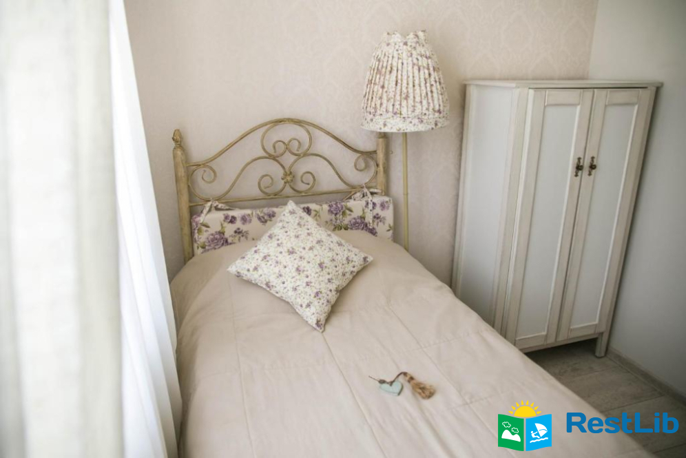 Інтер’єр маєтку витриманий в пастельних тонах з яскравими акцентами на текстиль. Затишні кольори, які наче вицвіли на сонці, піднімають настрій та створюють атмосферу затишку та спокою. Навмисно зістарені меблі та двері, витончені, практично невагомі ковані елементи інтер’єру придають маєтку елегантність та віддзеркалюють домашню теплоту.