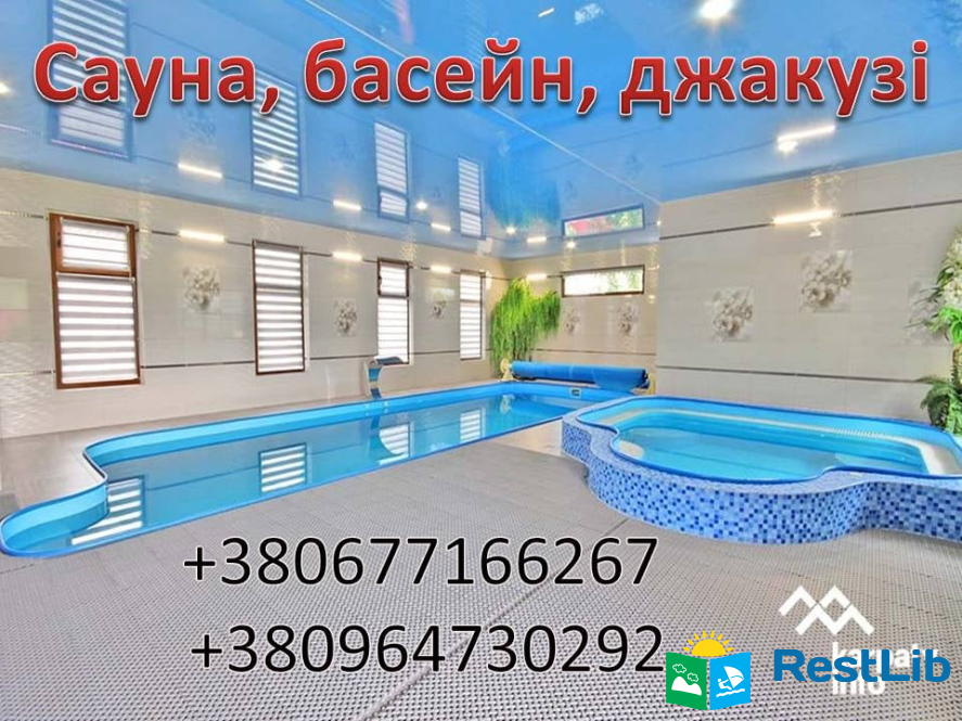 - Сауна на 6 осіб з басейном для плавання та джакузі — 700 грн за 1 год.