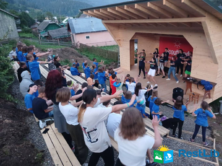 • Сцена з амфітеатром на 100 осіб.