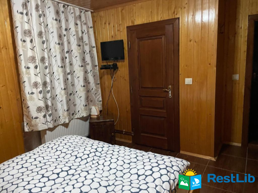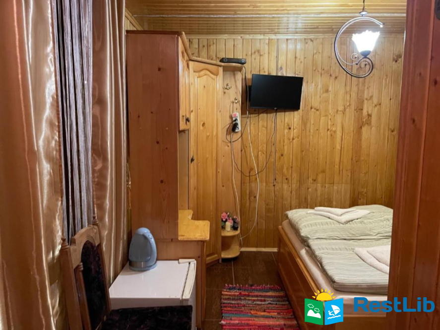 Будинок і кімнати оброблено деревиною, що дає неповторне відчуття поєднання з природою, а шум та течія річки принесуть вам хороші відчуття душевного спокою.