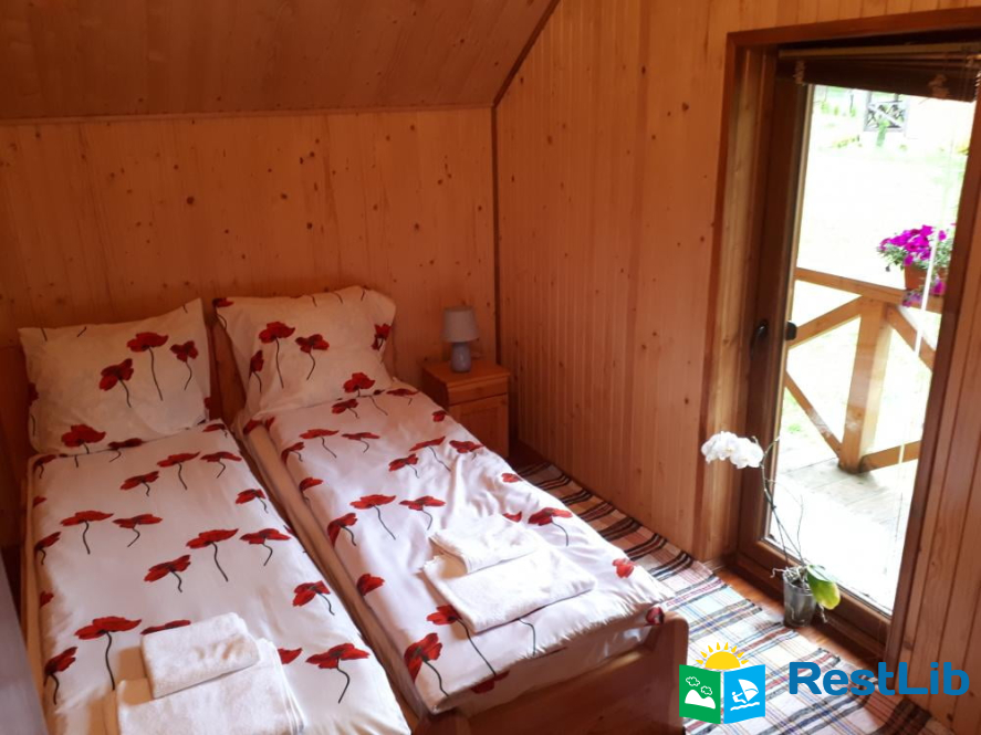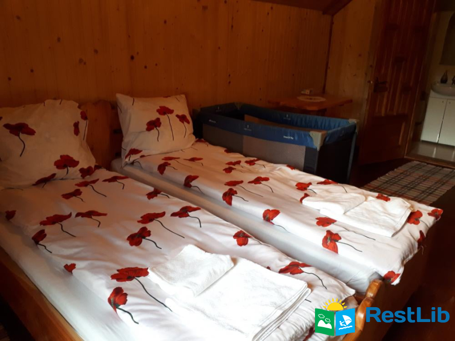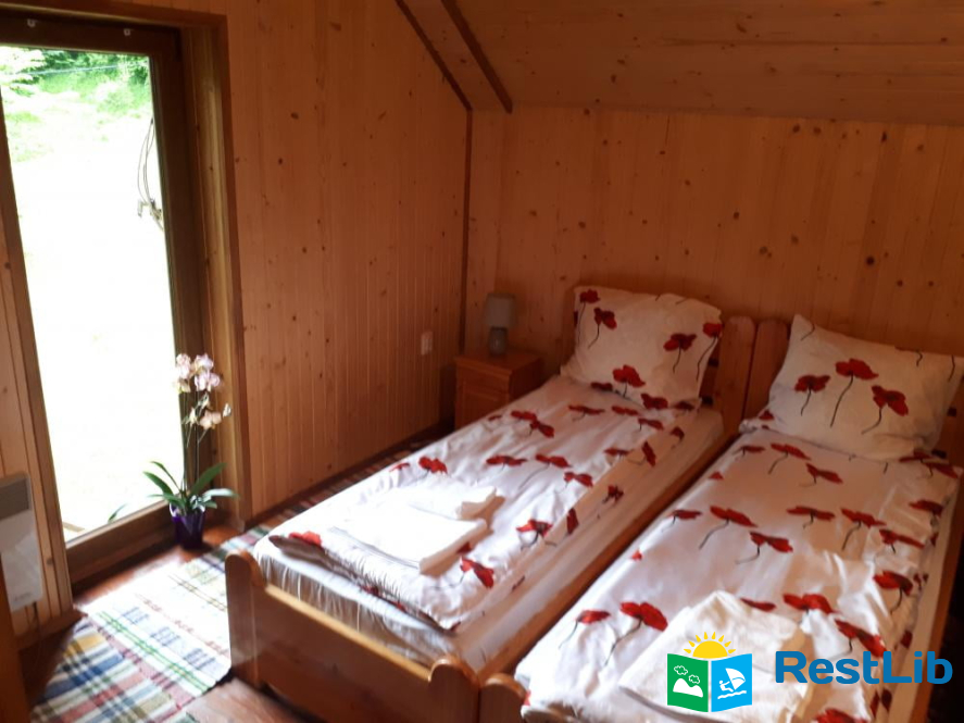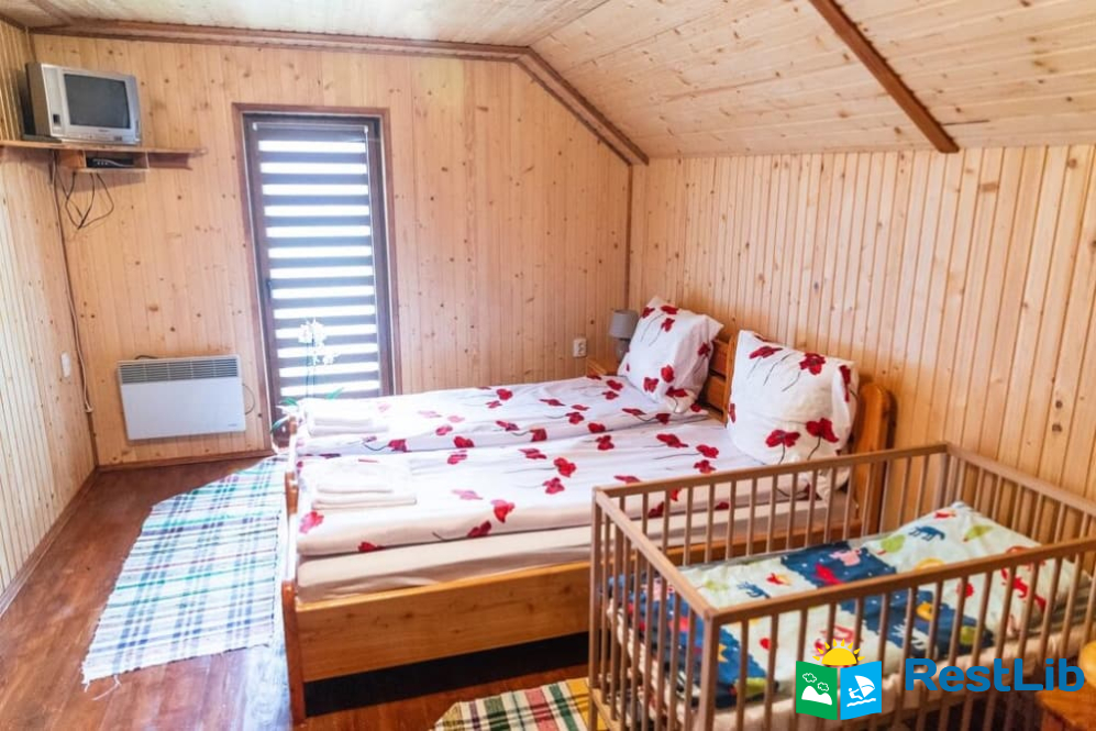 На другому поверсі — 2 двомісні кімнати і 1 чотирьох місна (у кожній — двоспальне ліжко, шафа для одягу, санвузол, телевізор, електрочайник, wifi, додаткові ліжка для маленьких дітей.