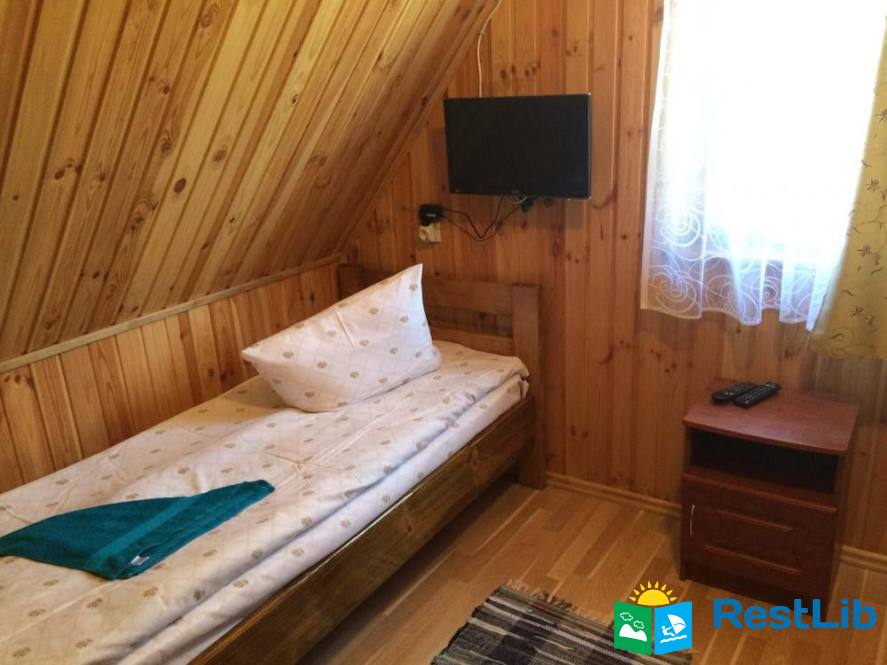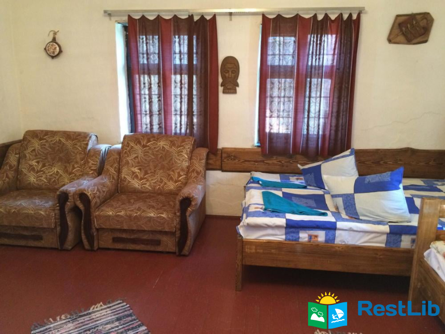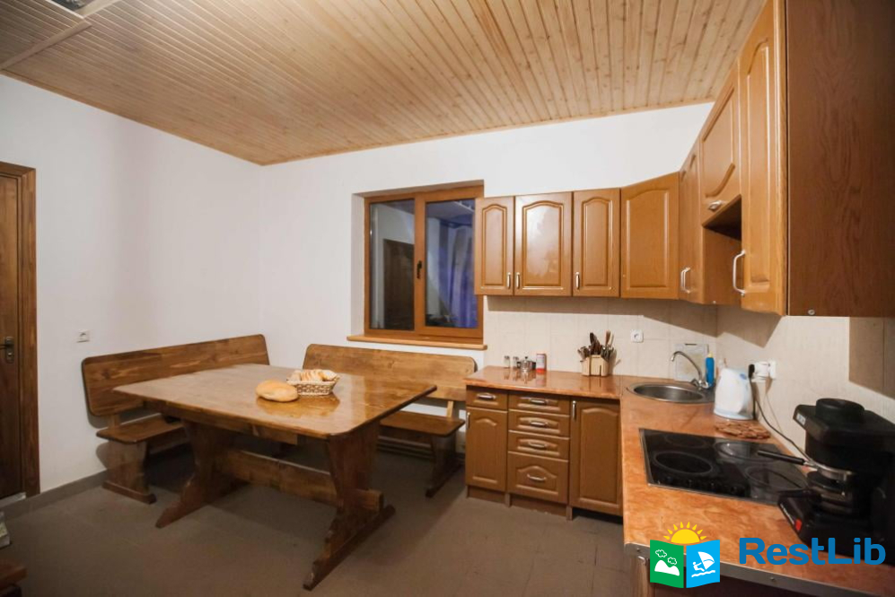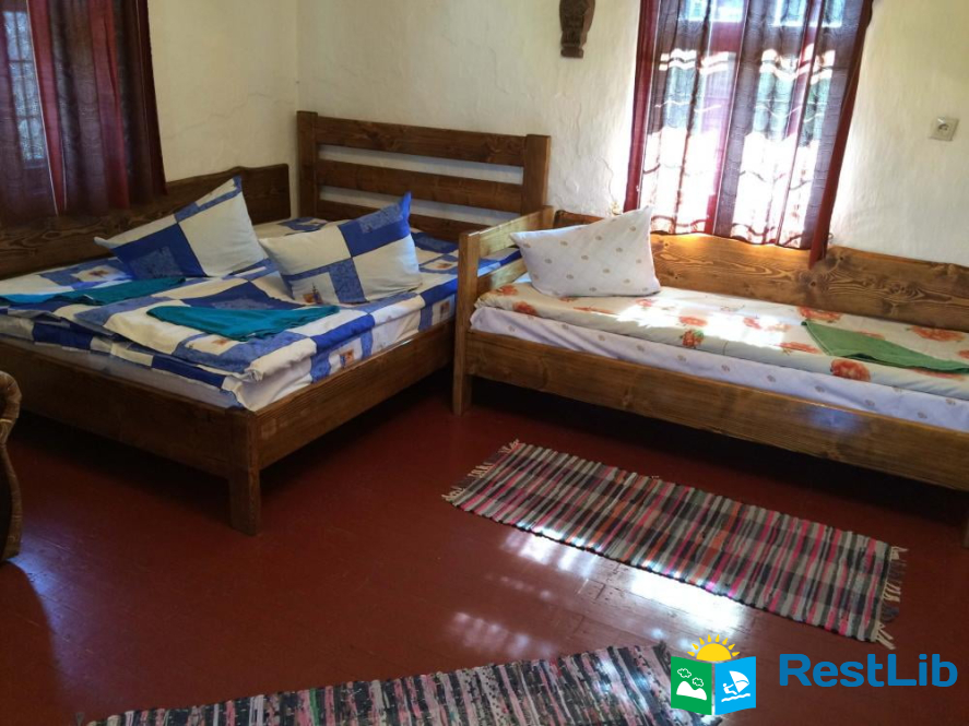 Складається садиба з кухні-столової, кімнати з каміном та 2-х кімнат на другому поверсі і санвузла. Постійна холодна, гаряча вода, душ. Опалення: електричні конвектори. Є супутникове телебачення, DVD.