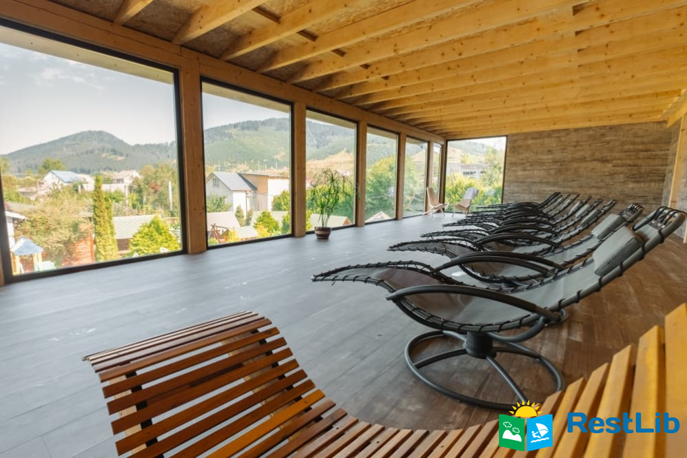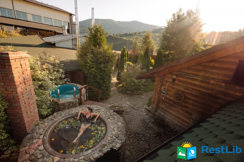 - власний SPA-комплекс, який налічує баню на дровах, карпатський чан, джакузі під відкритим небом, масажну кімнату, соляну кімнату, закриту з панорамними вікнами лаундж зону та зону для відпочинку на свіжому карпатському повітрі. Фінська сауна, римьска парна, інфрачервона сауна, душ шарко та літнй душ, сінна відпочинкова кімната. Масажер для ніг, який викладеней з каменю