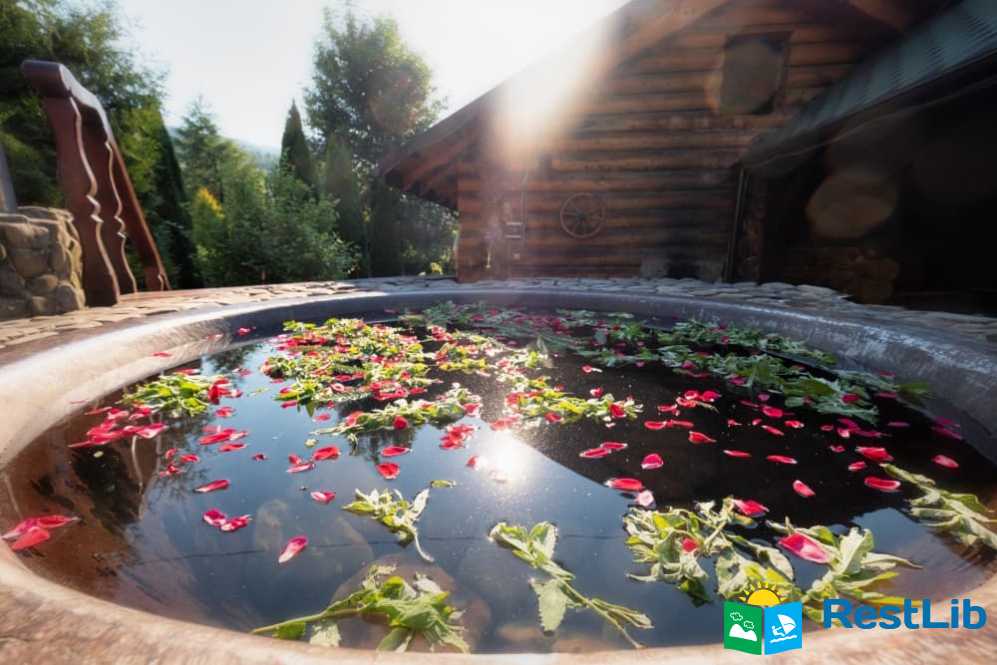 - Карпатський чан з мінеральною водою до 4 осіб — 800 грн за 2 години. Доплата 100 грн за кожну наступну особу.