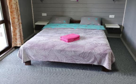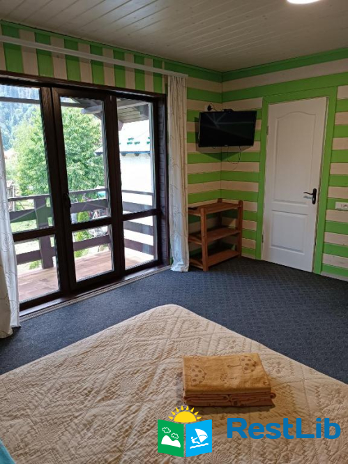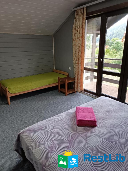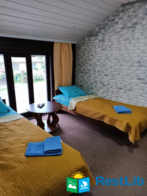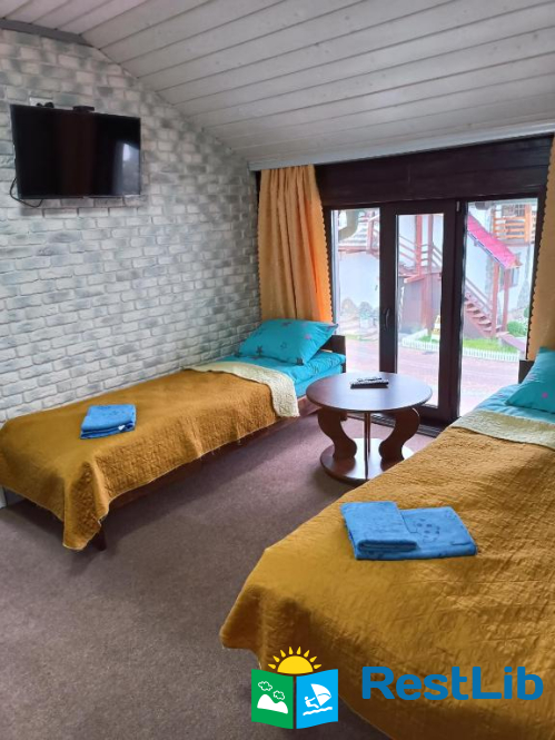 Двокімнатний номер складається з двох кімнат. Перша кімната прохідна ( в ній два роздільних односпальні ліжка , телевізор і роздільний санвузол). Відповідно за дверима буде інша кімната, в ній є двоспальне ліжко і одне односпальне, ну і звичайно є балкон. Другий номер двомісний в зелених тонах. В ньому є телевізор, балкон і відповідно санвузол