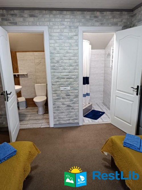 З тераси вхід на кухню. Кухня простора. З кухні вхід в двокімнатний номер і також вхід в інший двомісний номер з іншого боку. Кожен номер має санвузол та балкон.