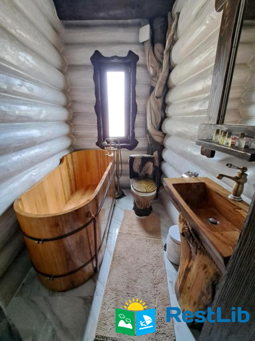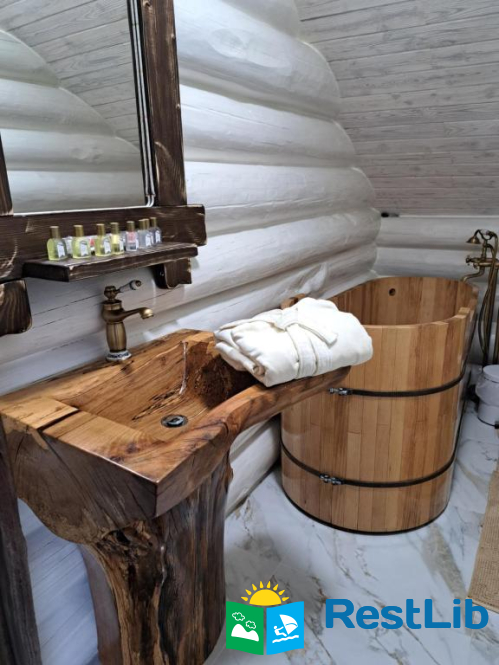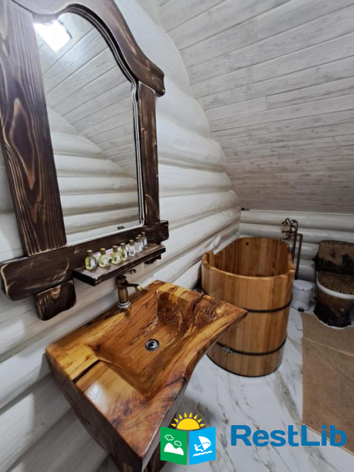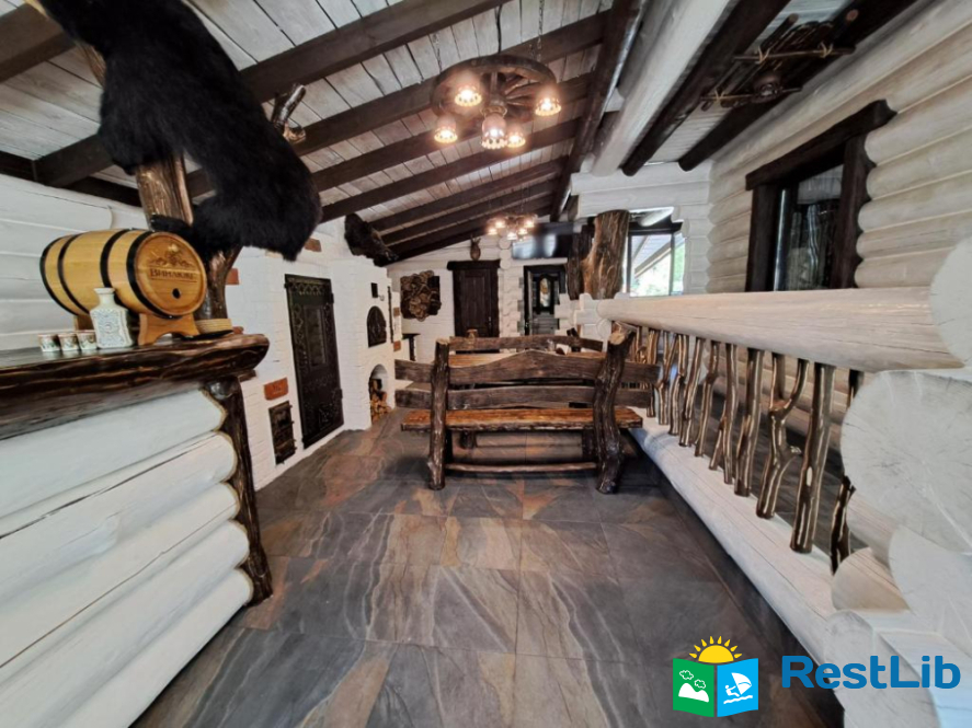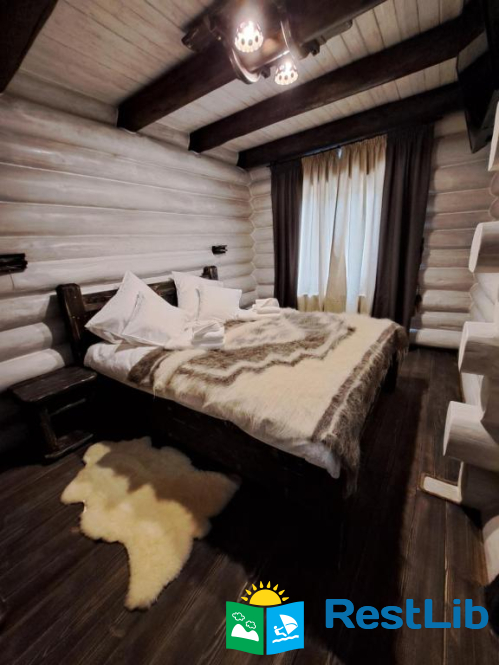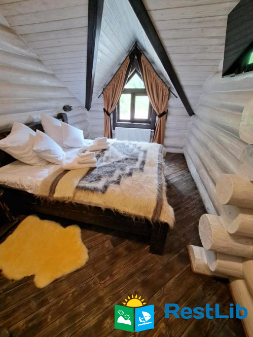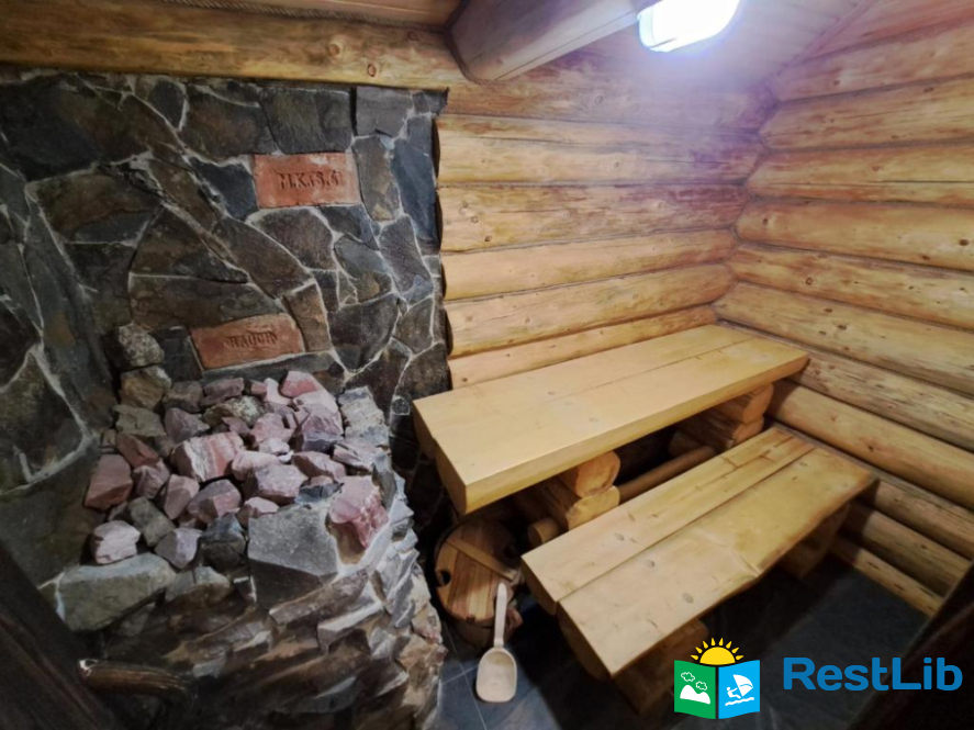 В котеджі є: укомплектована кухня, сауна на дровах, вітальня, 2 спальні кімнати, 2 ванні кімнати.