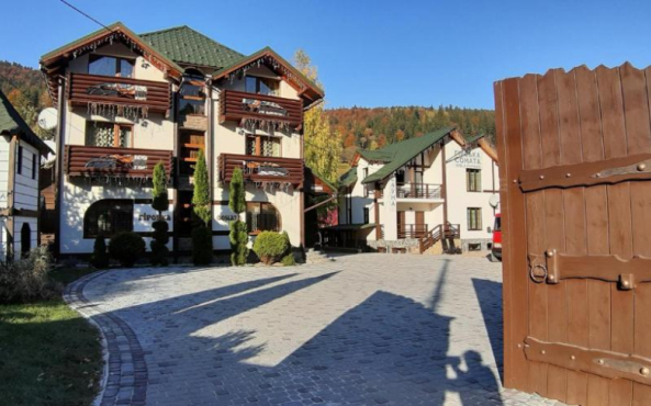 ГІРСЬКА СОНАТА HOTEL & APARTMENTS - це невеличкий комплекс для сімейного відпочинку у Карпатах поруч із Карпатським Національним Парком (урочище Женець та водоспад Гук). Розташований готель по – справжньому у мальовничому куточку на березі р Прут в оточенні вічнозелених лісистих гір села Микуличин із його досить помірним кліматом як для гірської місцевості.