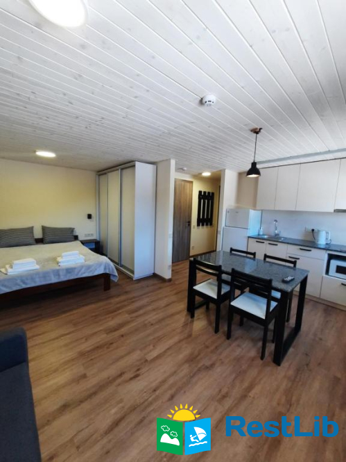 В апартаментах є повноційна кухня, санвузол, душ, зручне ліжко, розкладний диван та смарт телевізор.
