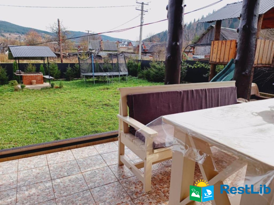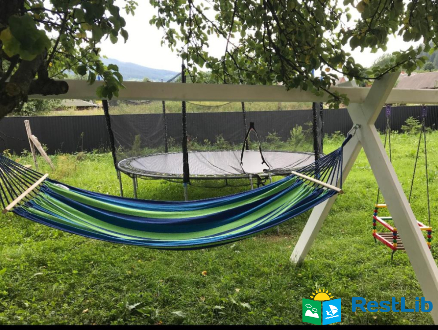 На тереторії: паркінг, мангал, батут, дитячий майданчик, гірка.