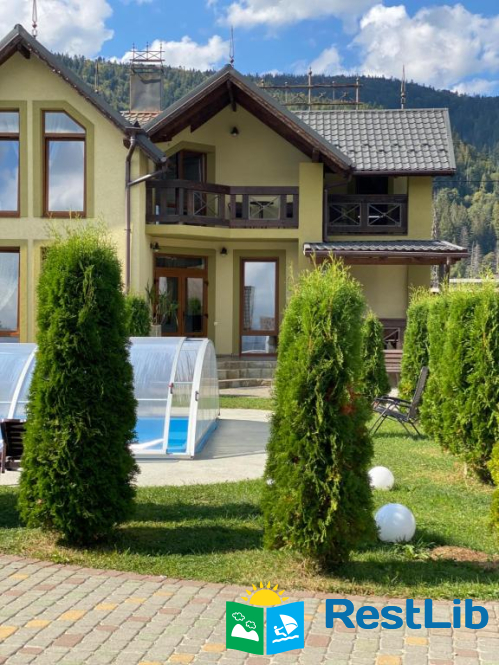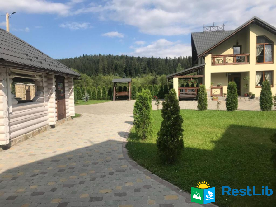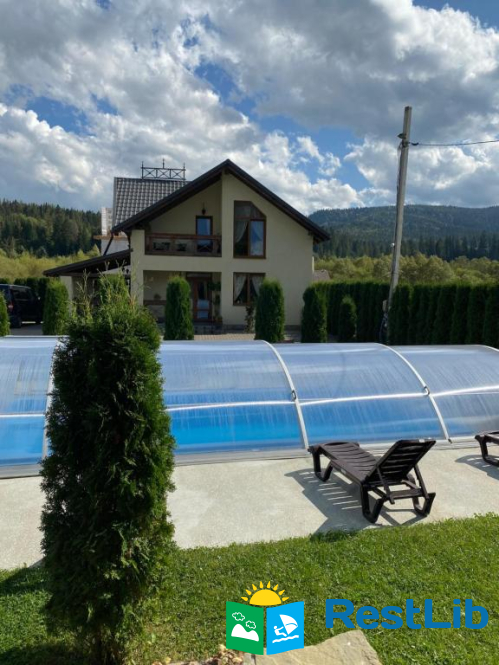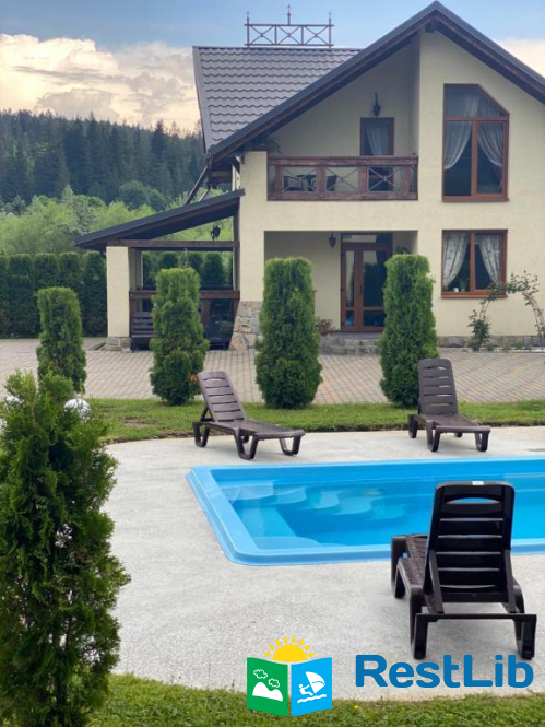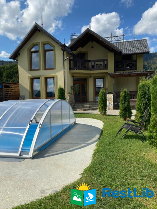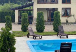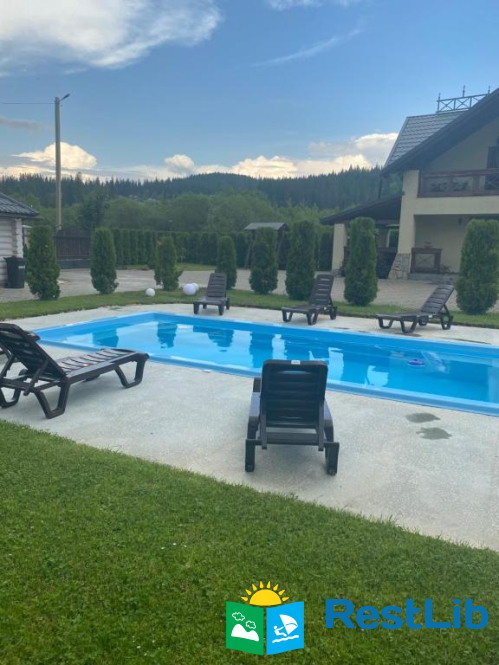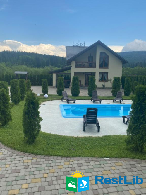 На подвір'ї є альтанка, мангал, дитячий майданчик, відкритий плавальний басейн з підігрівом.
