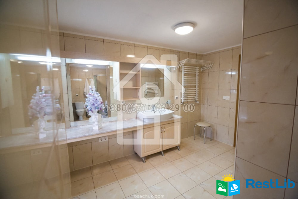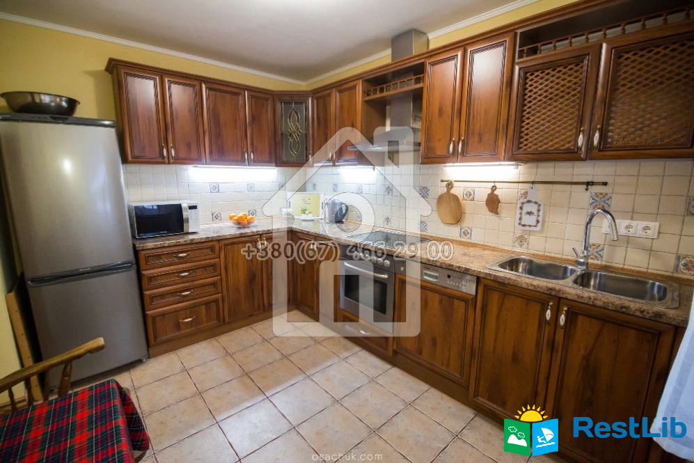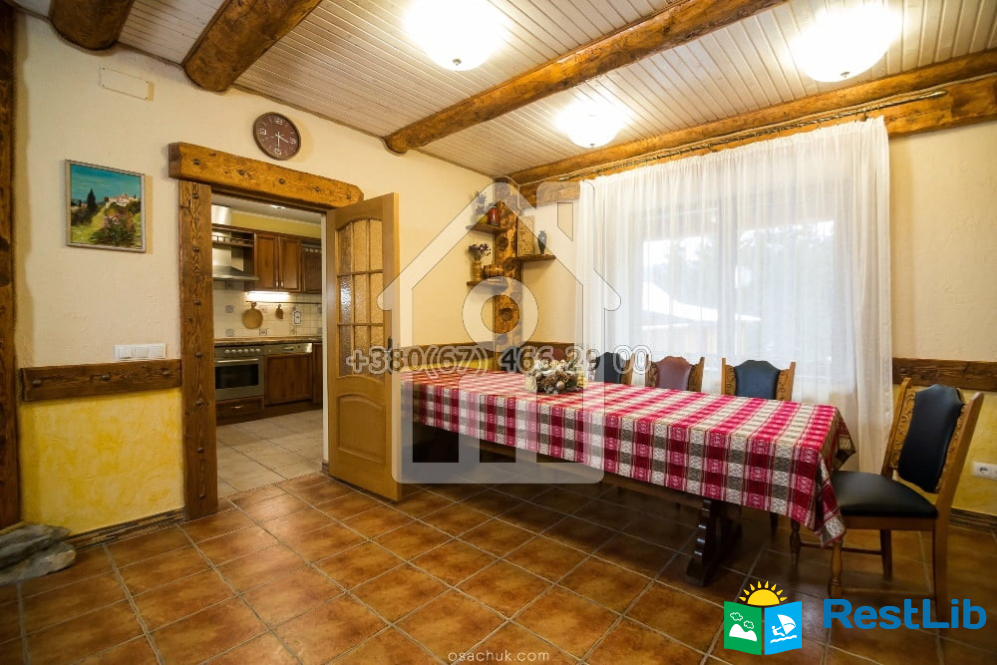 Котедж новий, 2-х поверховий, має 4 спальні на 8 осіб, вітальня (фортепіано), їдальня, кухня, 2 санвузли, тепла підлога. У кожній кімнаті телевізор, інтернет.