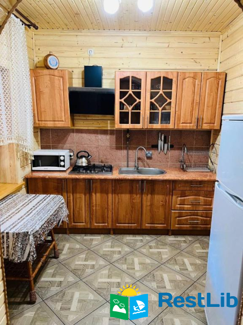 На першому поверсі — кухня, вітальня, санвузол.