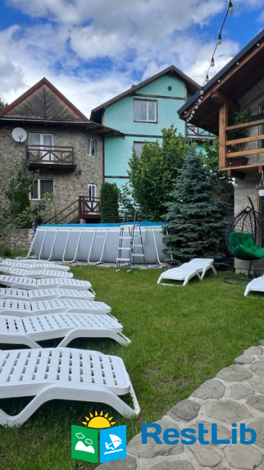 На території є каркасний басейн, чан, батут, альтанка та мангал, а також місце для парковки.