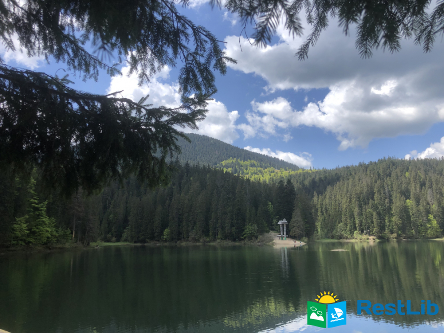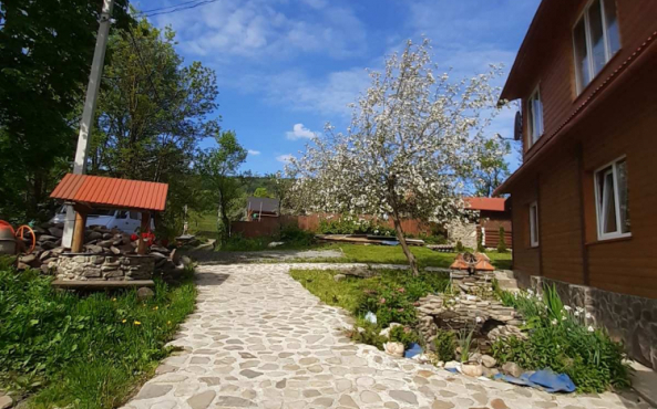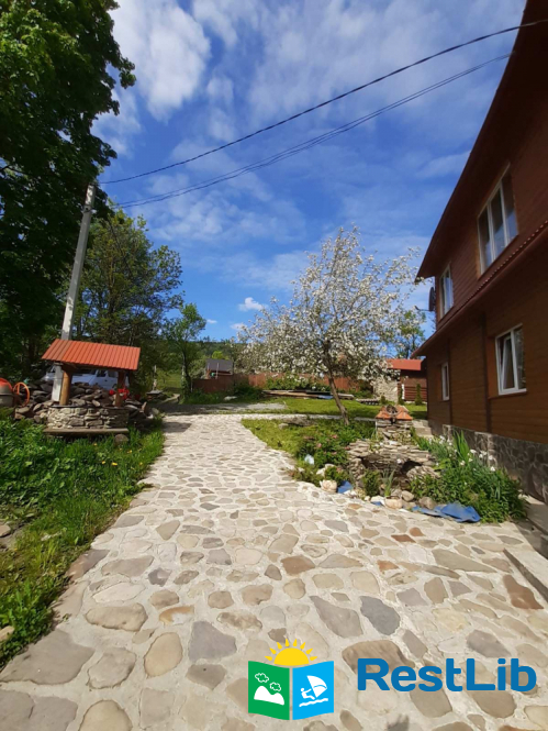 На території є 3 котеджі, кафе, колиба, сауна і чан, магазин, альтанка, мангал, дитячий майданчик.
