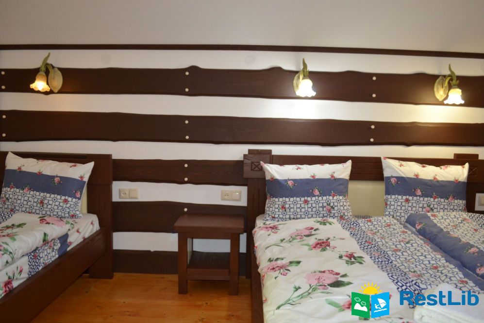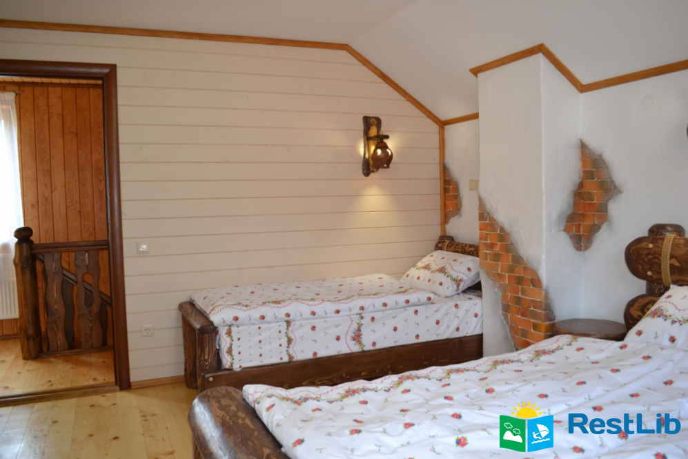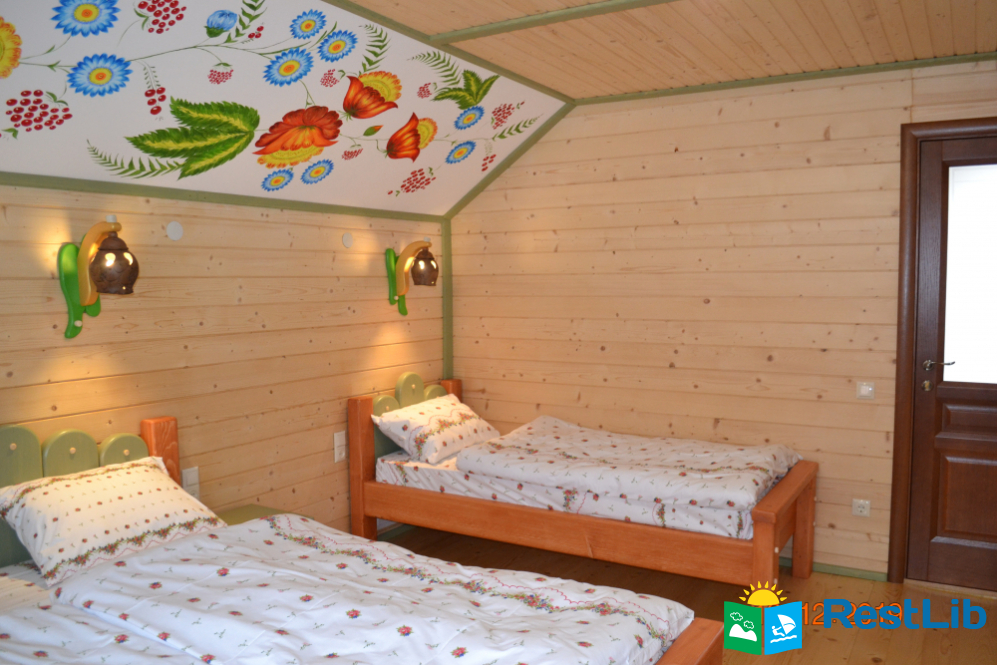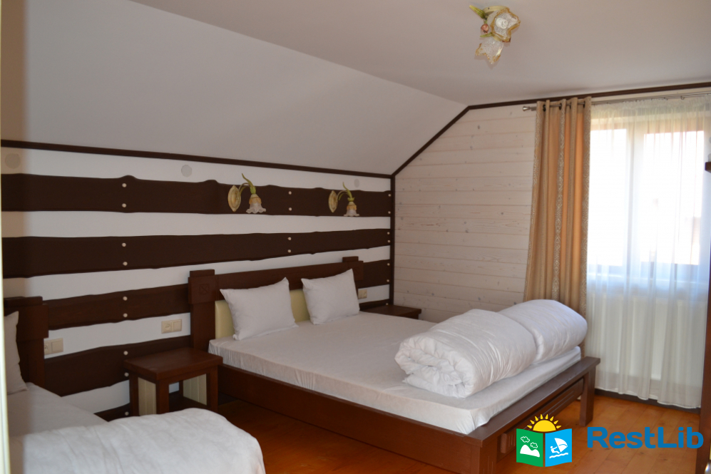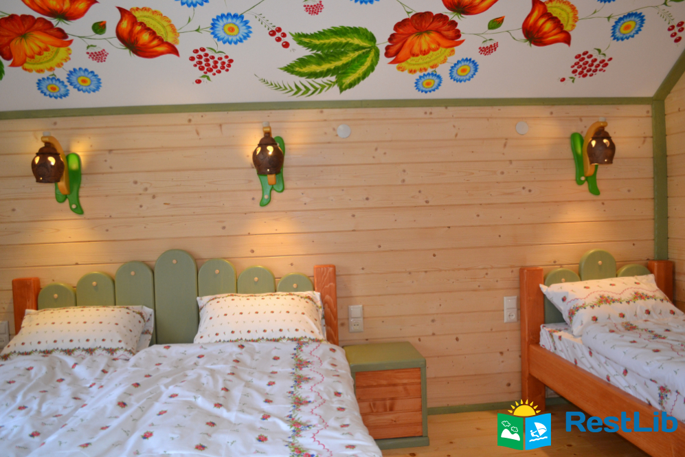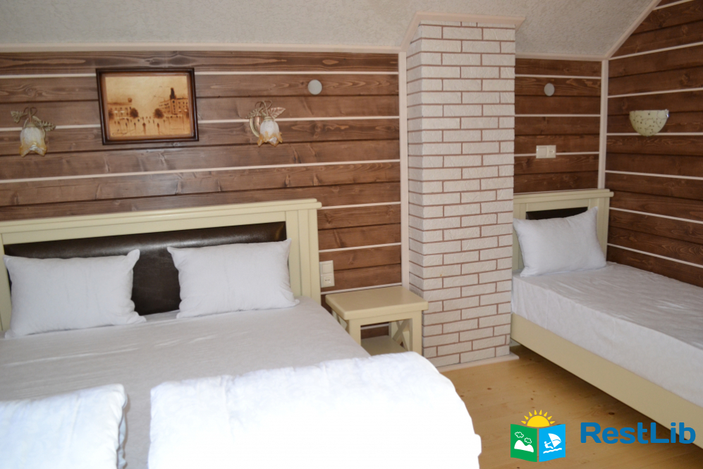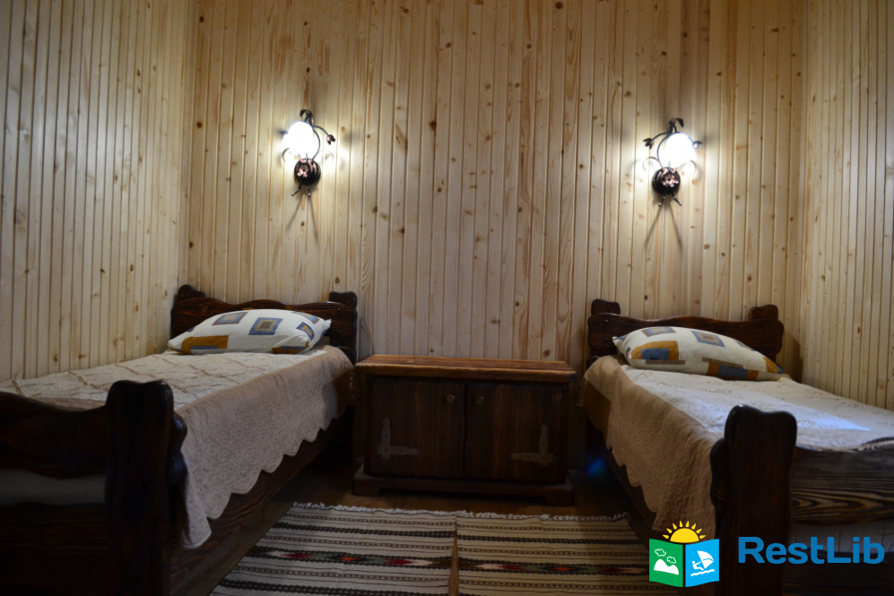 2 тримісні кімнати (у кожній — двоспальне і односпальне ліжка, шафа для одягу), санвузол (душова кабіна, туалет, умивальник)