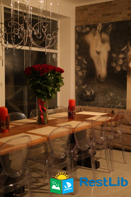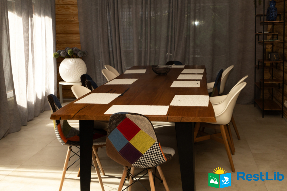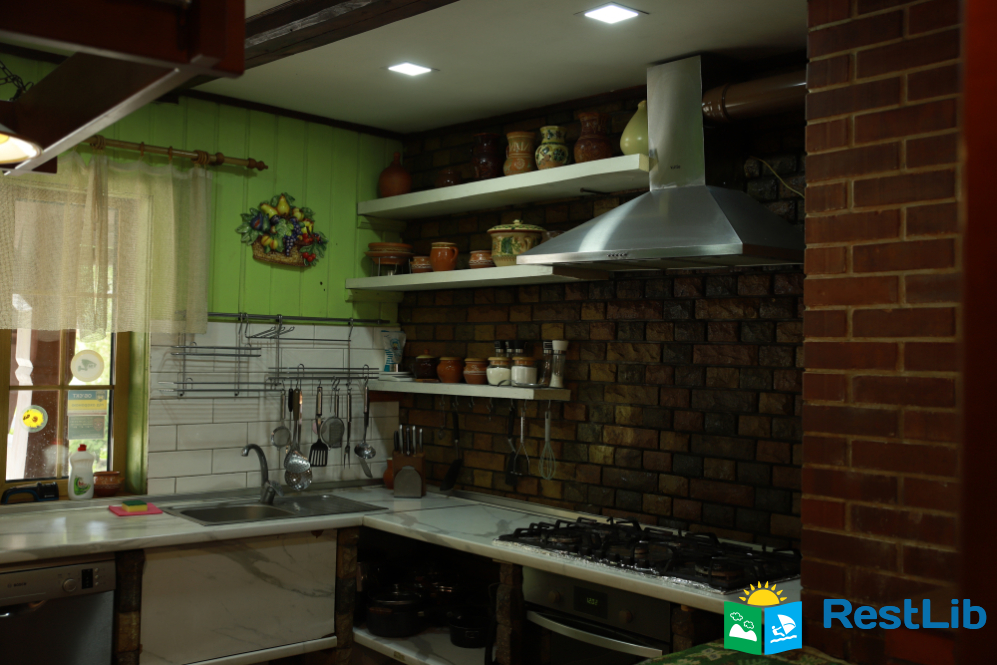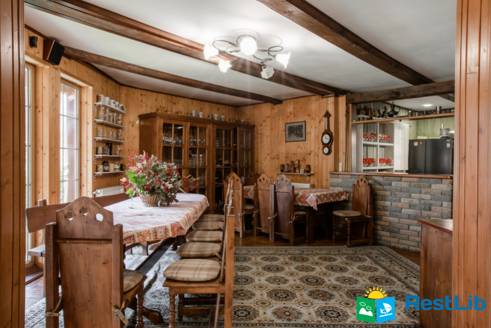 У котеджі є велика столова та кухня для самостійного приготування їжі, укомплектована всією необхідною технікою.